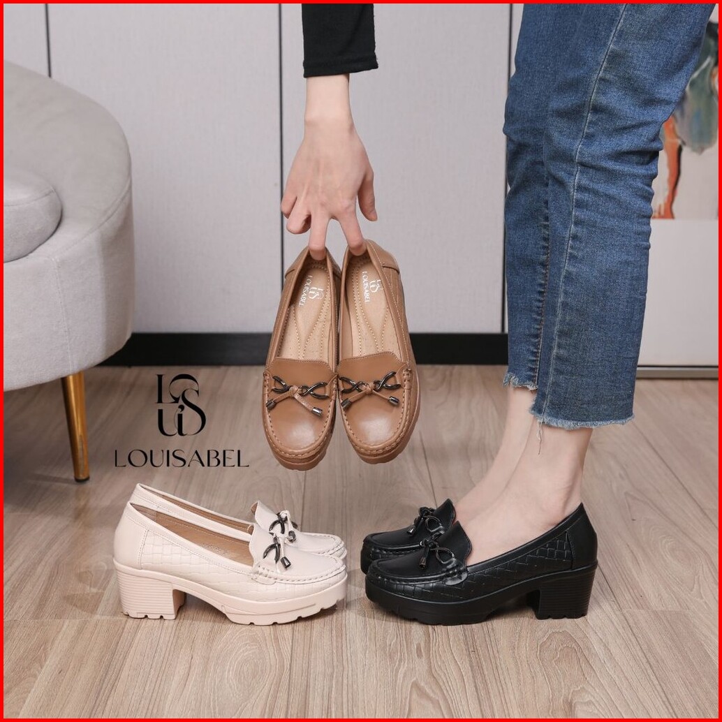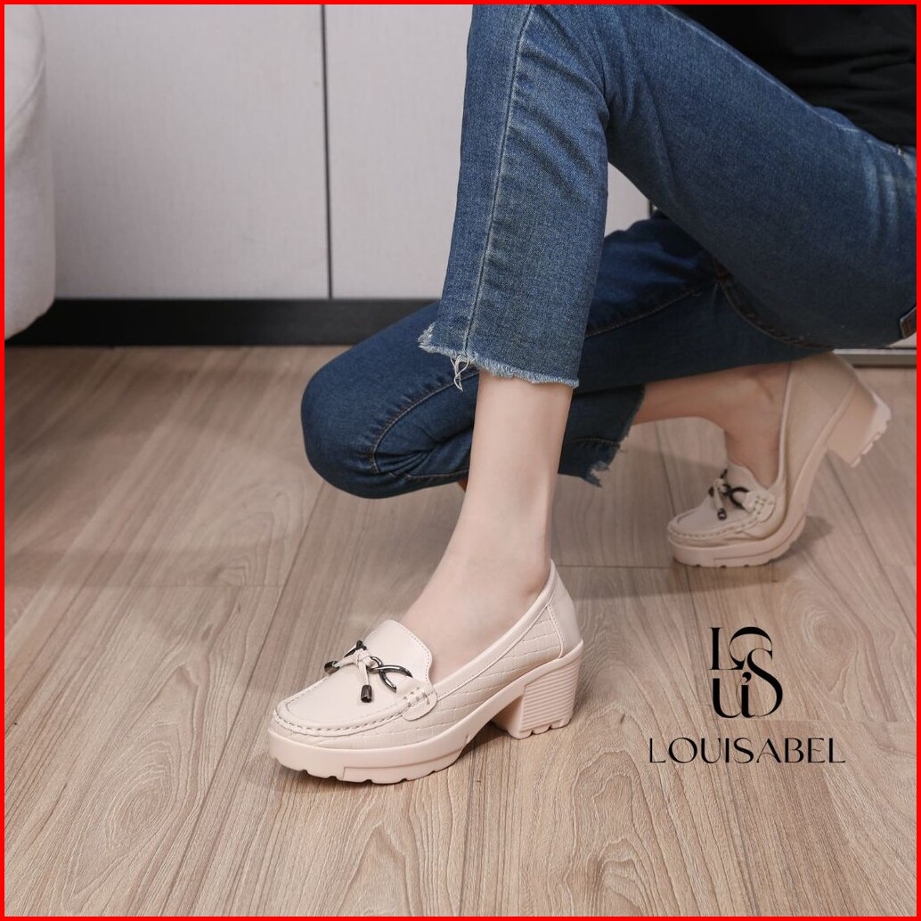 Louisabel Vivara Ribbon Style Chunky Wedges Sepatu Kerja Wanita Lsb-3529-pu