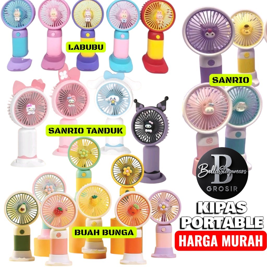 Kipas Angin Mini BELLA Sanrio Karakter Bunga Buah Rusa Portable Lucu Dudukan