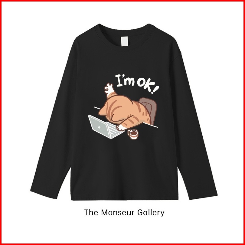 The Monseur Gallery Baju Kaos Wanita Lengan Panjang Kaos Oversize Wanita Baju Atasan Wanita Cute Cartoon Working Cat I A