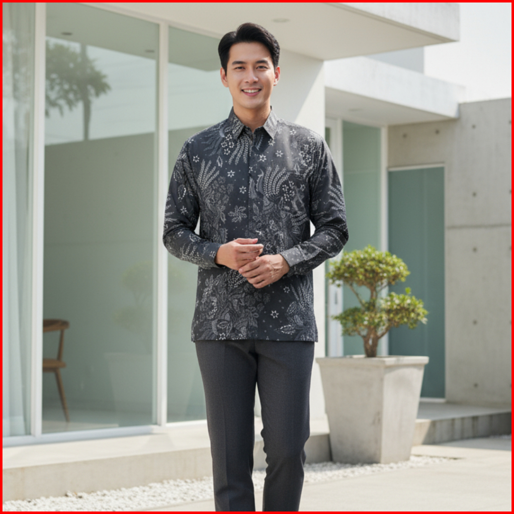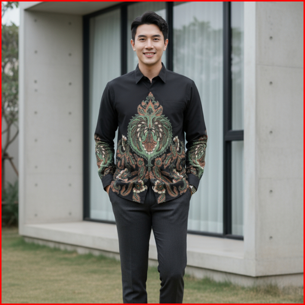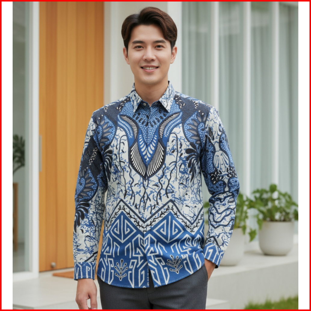 Dinanow Kemeja Batik Pria Lengan Panjang