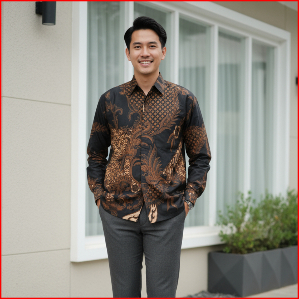 Dinanow Kemeja Batik Pria Lengan Panjang