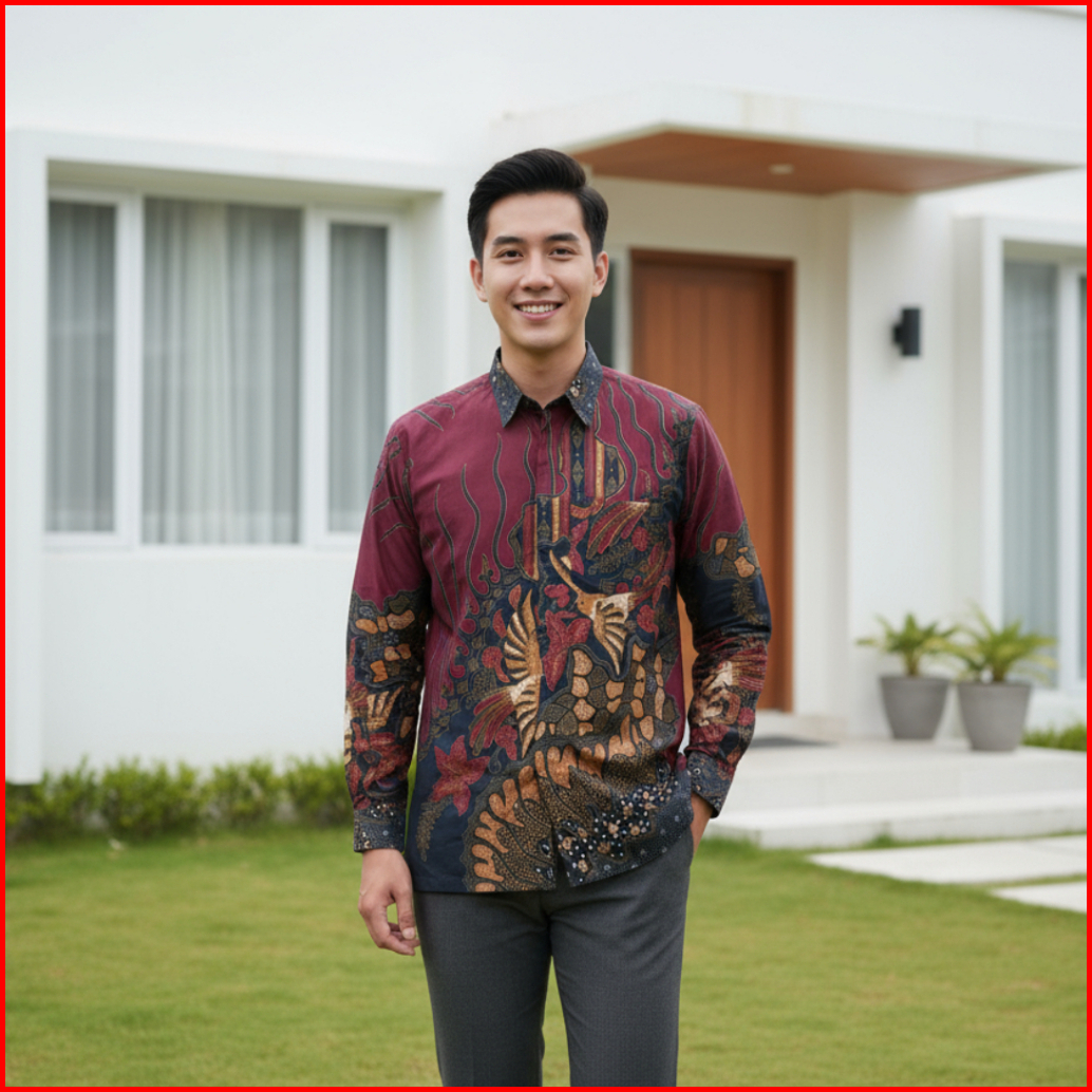 Dinanow Kemeja Batik Pria Lengan Panjang