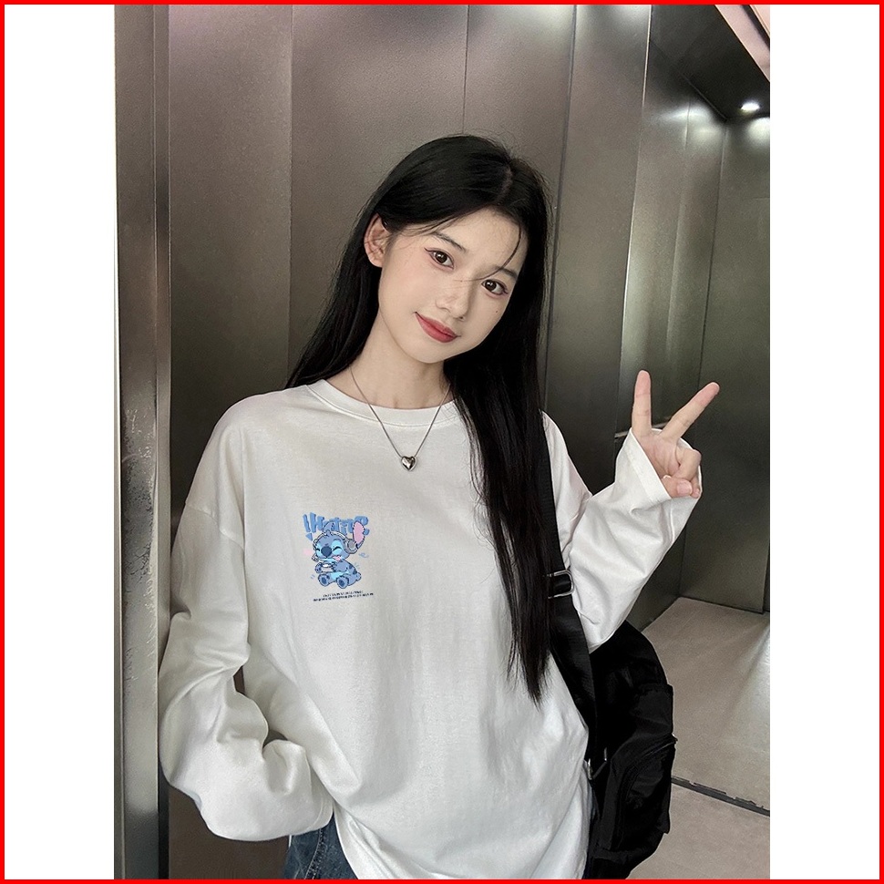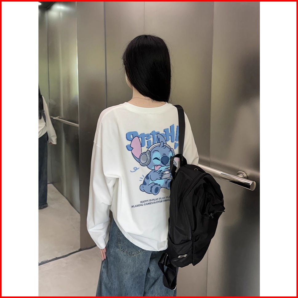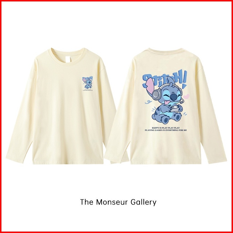 The Monseur Gallery Baju Kaos Wanita Lengan Panjang Kaos Oversize Wanita Baju Atasan Wanita Stitch Playing Games Kaos