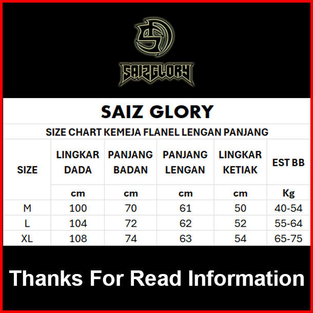 Saiz Glory Kemeja Flanel Pria Kemeja Flanel Panjang Kemeja Pria