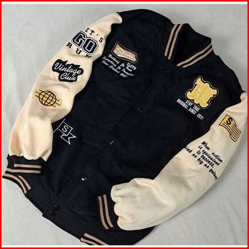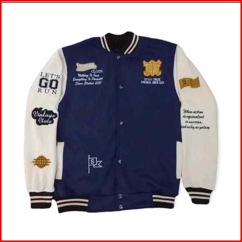 Jaket Varsity Vintage Full Bordir Hitam Jaket Baseball Varsity Pria Wanita New Arrival Anak Muda Banget