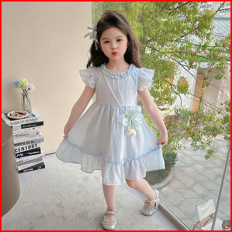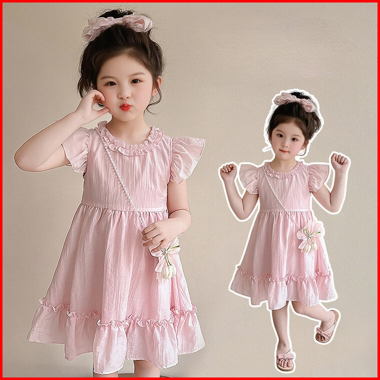 Sweetie Bloomgaun Anak Perempuan Usia 2-9 Tahun Warna Pink Biru Lengan Terbang Rok Lipit Aksesori Mutiara Pita Rambut Ga