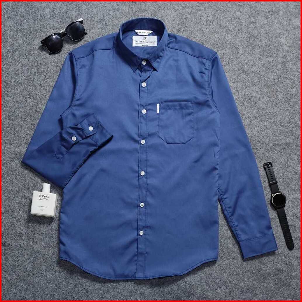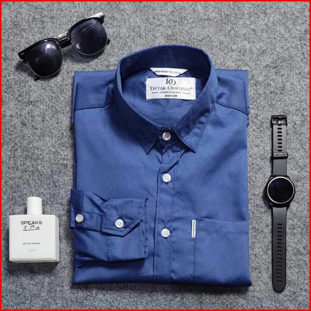 Detak Original Kemeja Polos Twill Premium Pria Lengan Panjang Steel Blue Casual Slimfit
