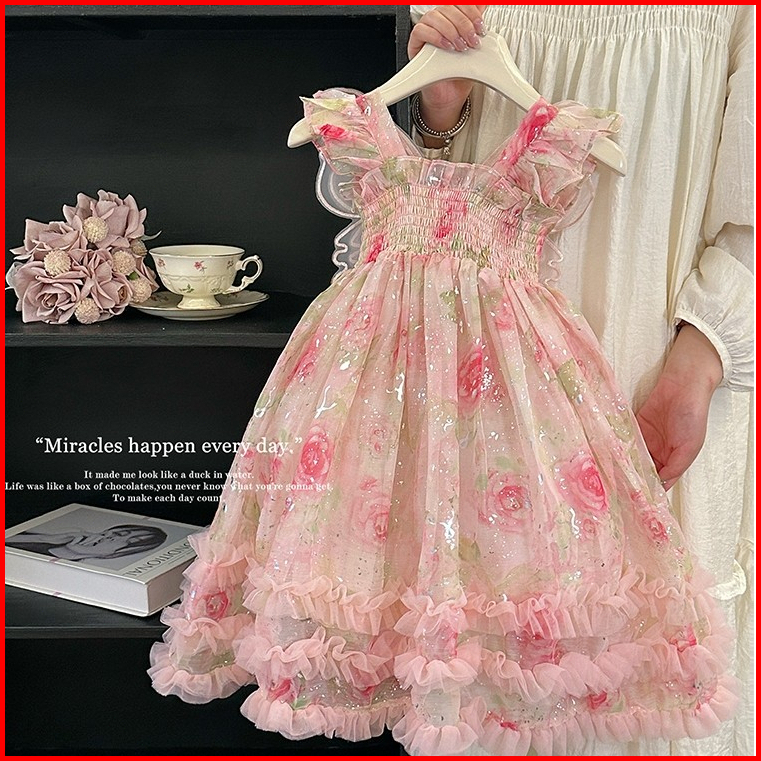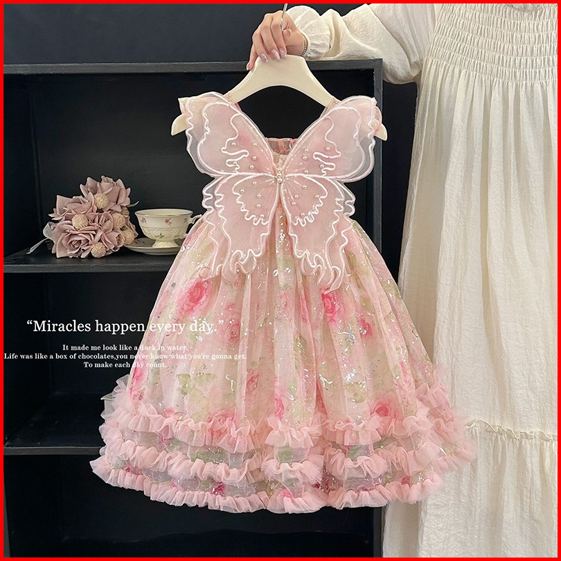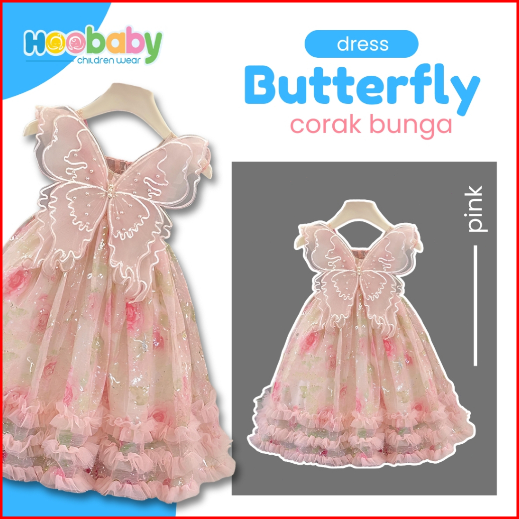 Hoobaby 1-9 Tahun Dress Butterfly Corak Bunga Flowers Anak Perempuan Sayap Kupu-kupu Gaun