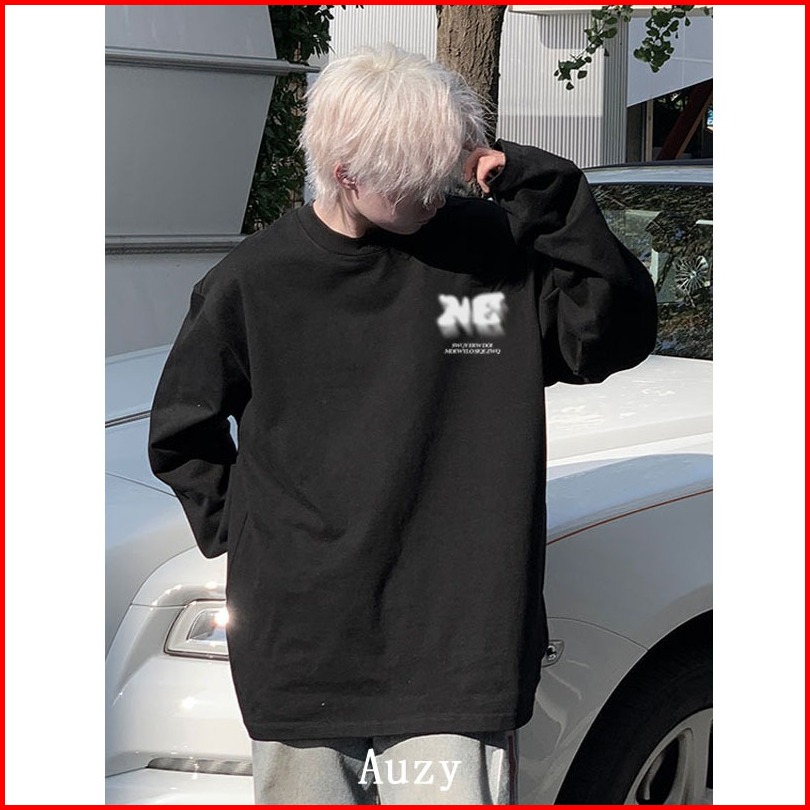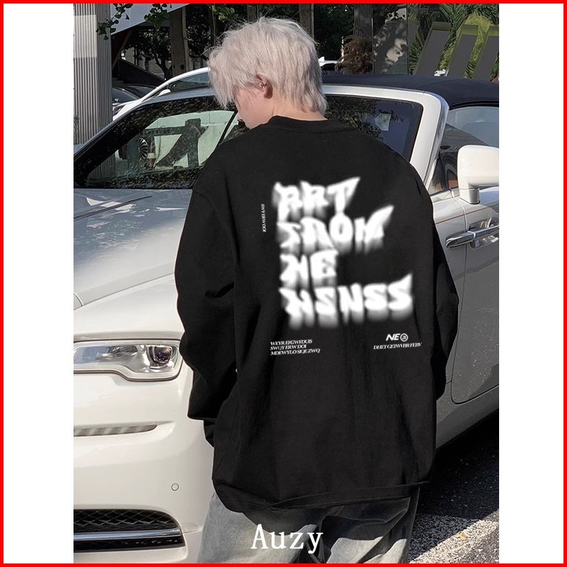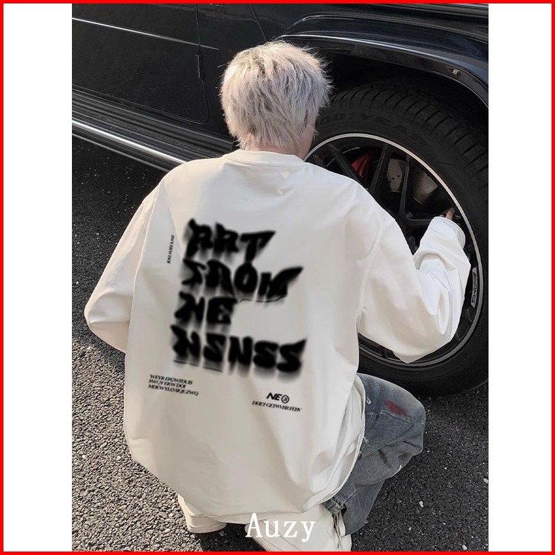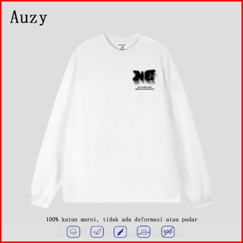 Auzy Huruf Kabur Amerika Kaos Pria Wanita Atasan Lengan Panjang T-shirt Skena Baju Oversize T Shirt Distro Original 100
