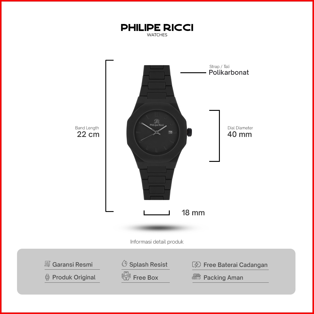 Philipe Ricci Jam Tangan Pria Analog Hitam Keren 100 Original Simple Terbaru P203 Men Watches