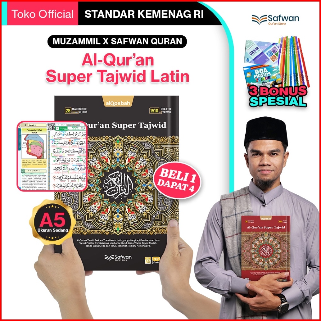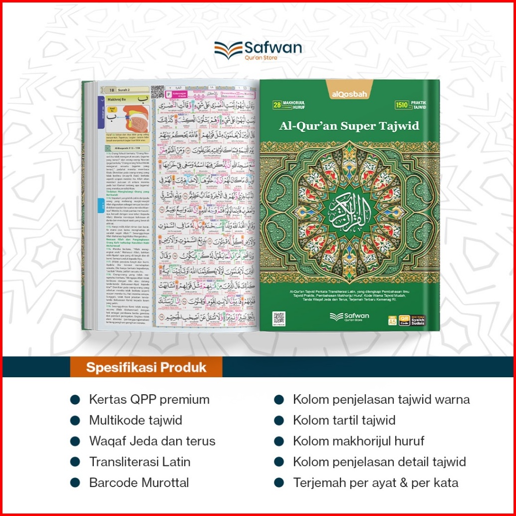 Safwan - Al Quran 30 Juz Latin Super Tajwid Terjemah Perkata Multikode Warna Alquran Fitur Lengkap Mushaf Belajar Ngaji