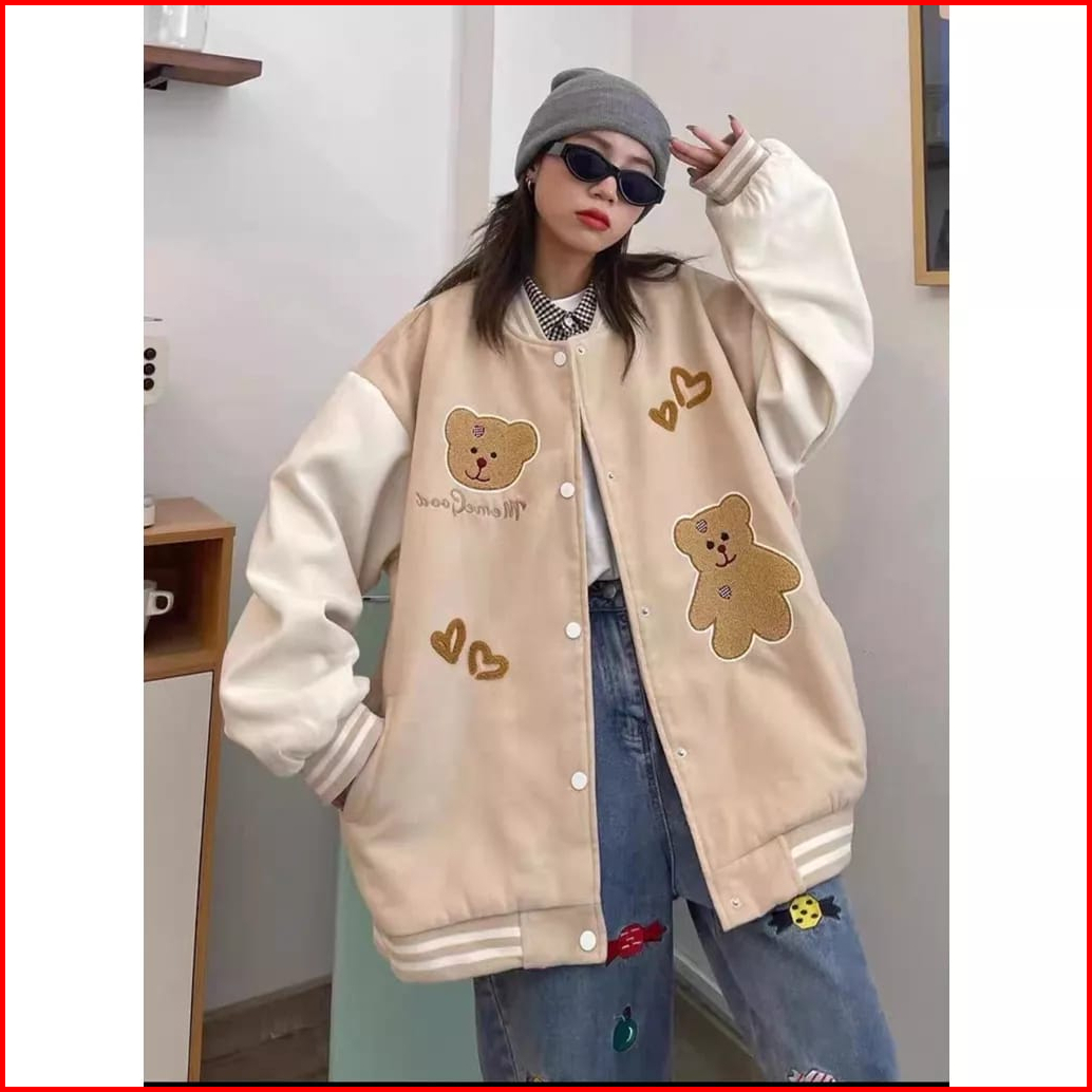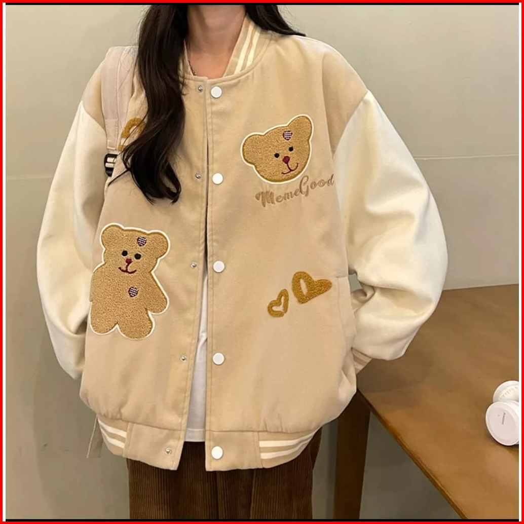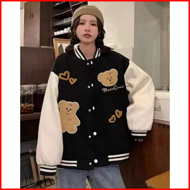 Jaket Varsity Meme Baseball Pria Wanita Oversize Bomber Bisbol Premium Reglan Outwer Sporty Bahan Fleece Tebal Korean St