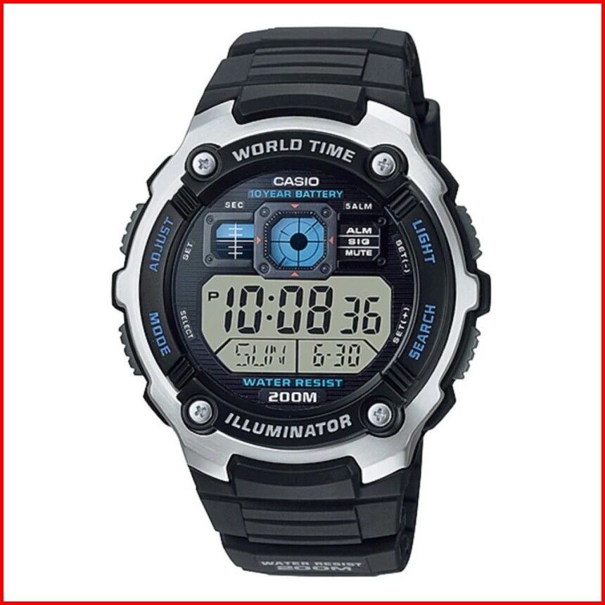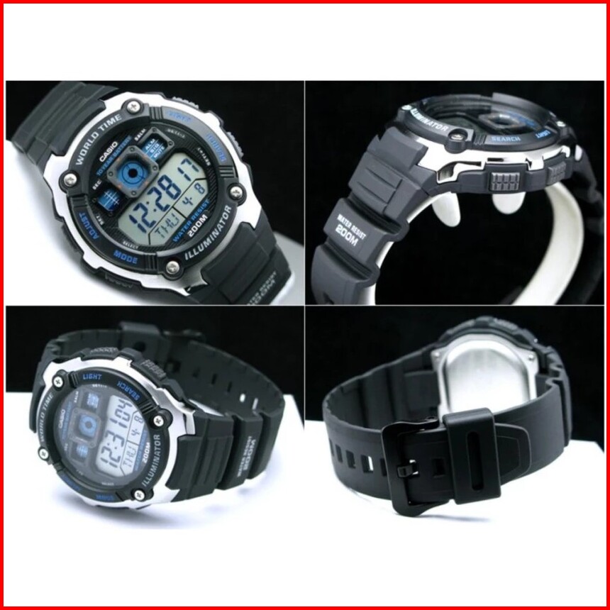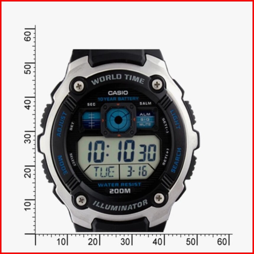Casio General Ae-2000w Ae2000w-1a 1b Jam Tangan Pria - Digital - Karet - Silver Hitam