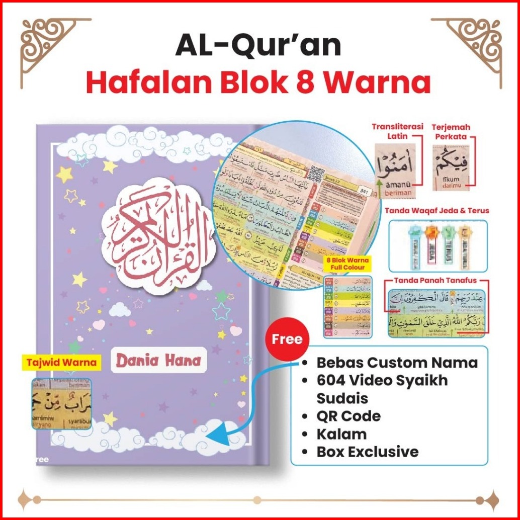 Alquran Hafalan Hafazan A5 Perkata Latin 8 Blok Warna Custom Nama Tajwid Warna Cocok Untuk Pemula 4 Murah