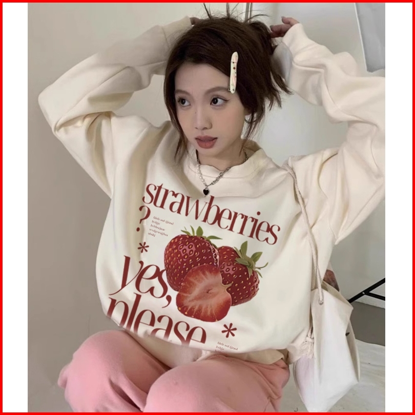 The Monseur Gallery Switer Wanita Oversize Sweater Lengan Panjang Oversized Street Style Korean Style Kaos Cetakan Straw