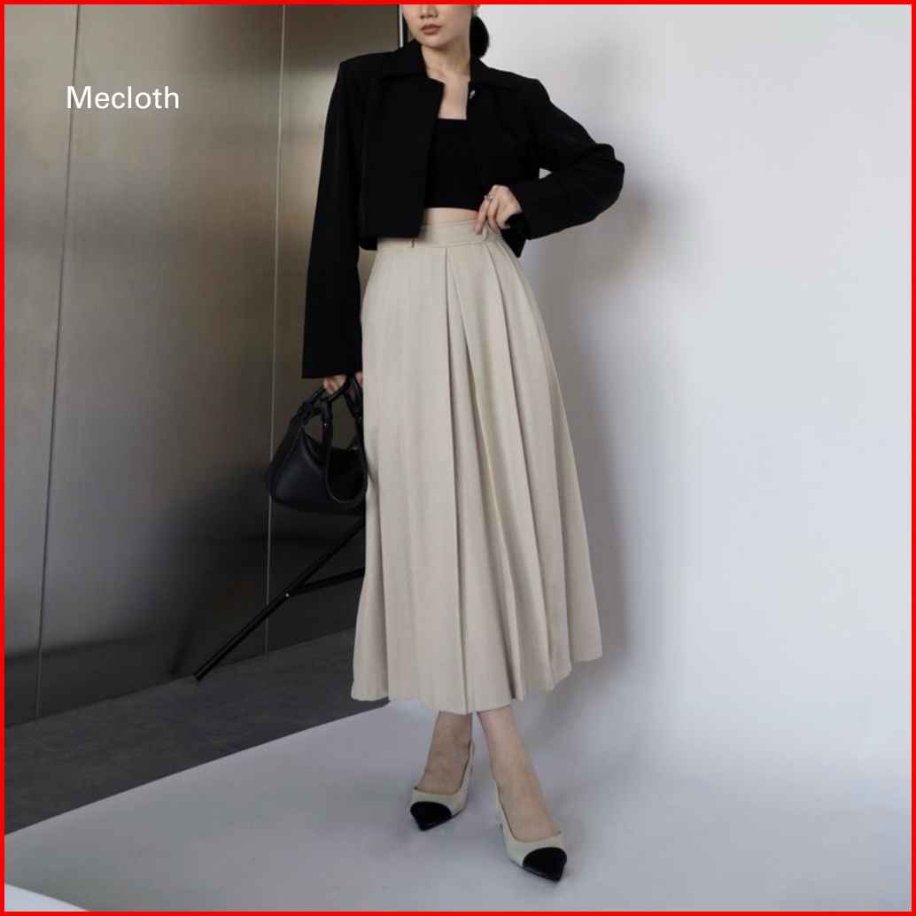 Mecloth - Rok Wanita Putih Panjang Long Skirt - Rok Kerja Wanita Formal Terbaru Kekinian Midi Skirt