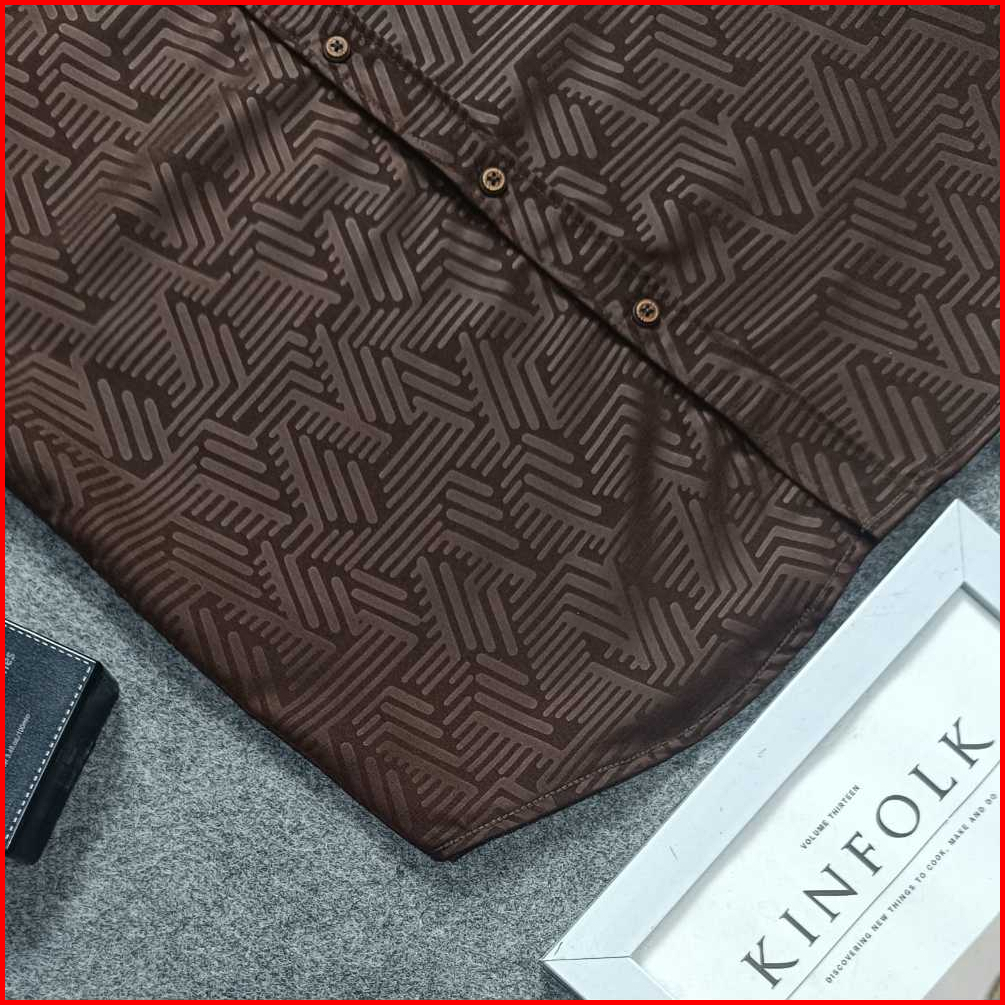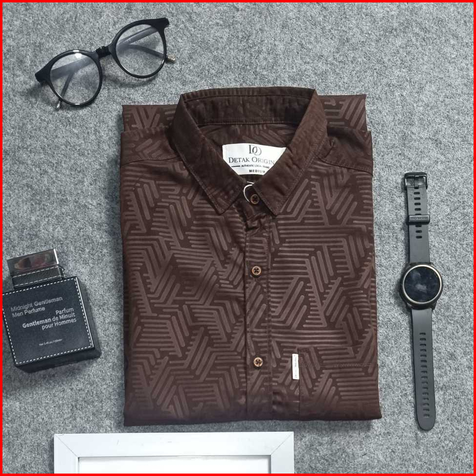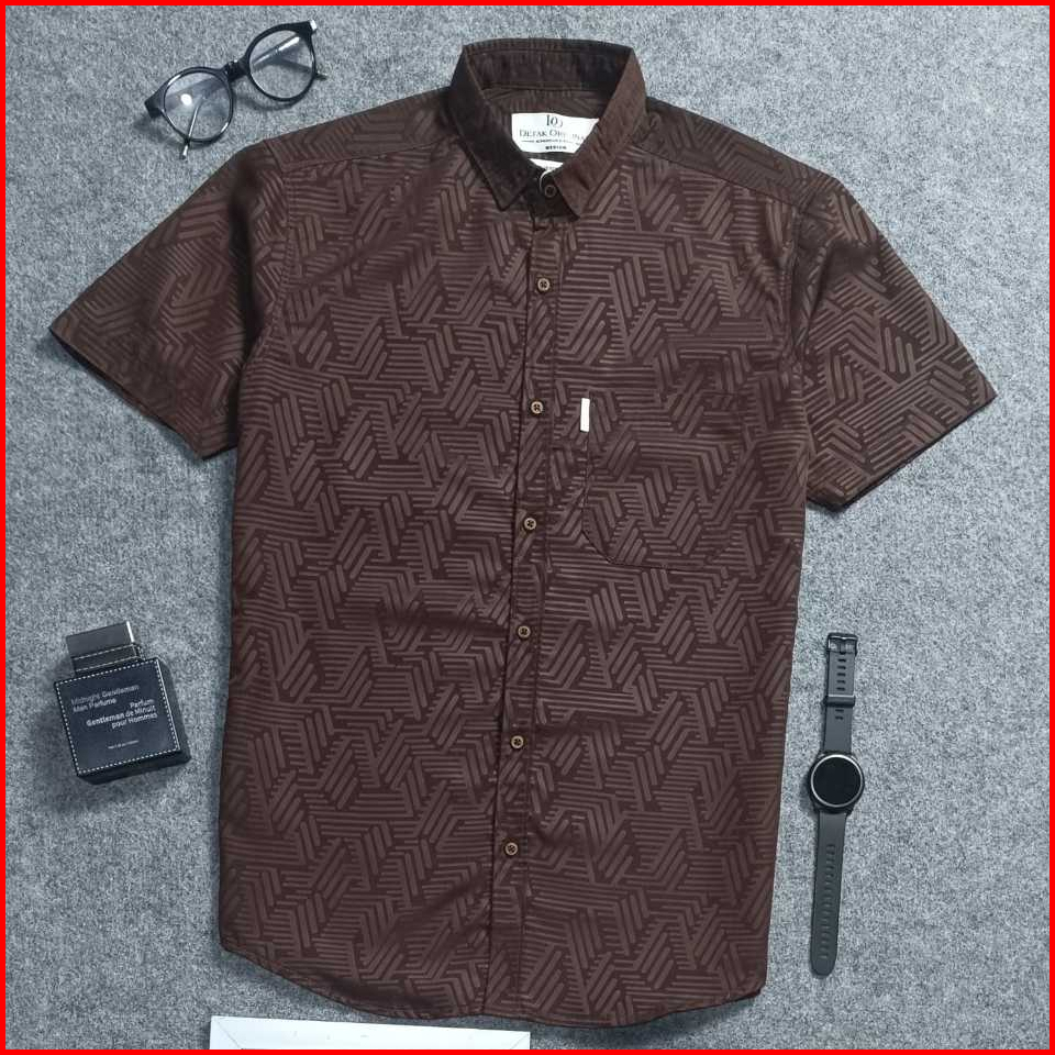 Detak Original Kemeja Embos Pria Lengan Pendek Motif Puzzle Coklat