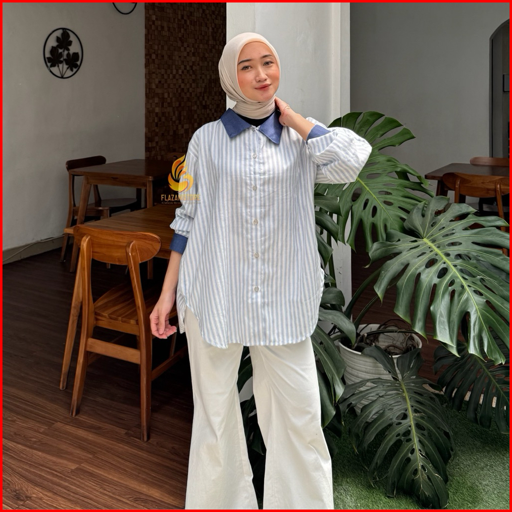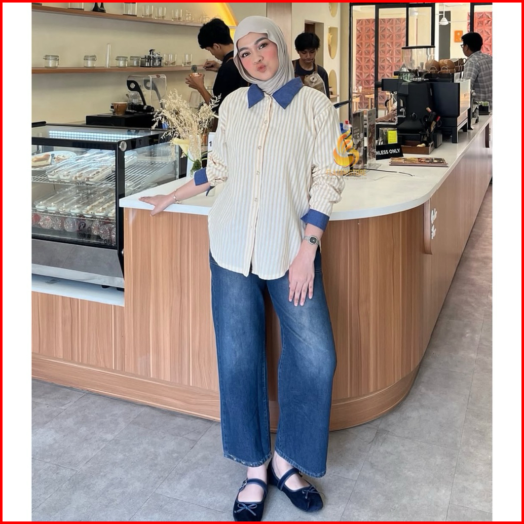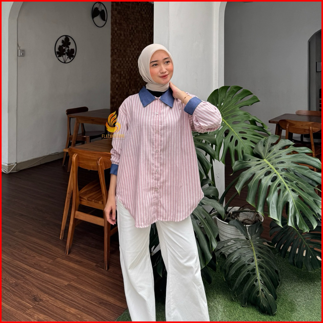 Zani - Eira Shirt - Kemeja Salur Wanita Lengan Panjang - Atasan Wanita Katun Basic