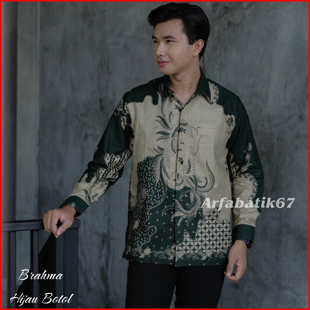 Brahma Hijau Botol Kemeja Batik Pria Lengan Panjang Dan Pendek Lapis Furing Adem Bahan Katun Prima Halus Ready Seragaman