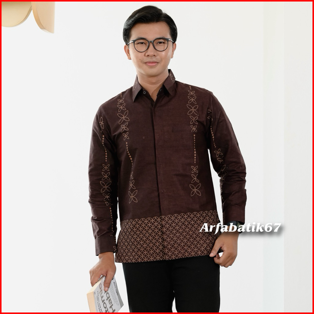 Kawung Mahogany Kemeja Batik Pria Lengan Panjang Katun Prima Premium Lapis Furing Hero Ready Seragaman By Arfabatik67
