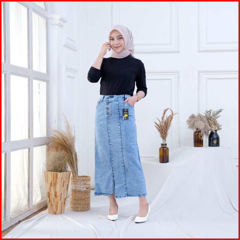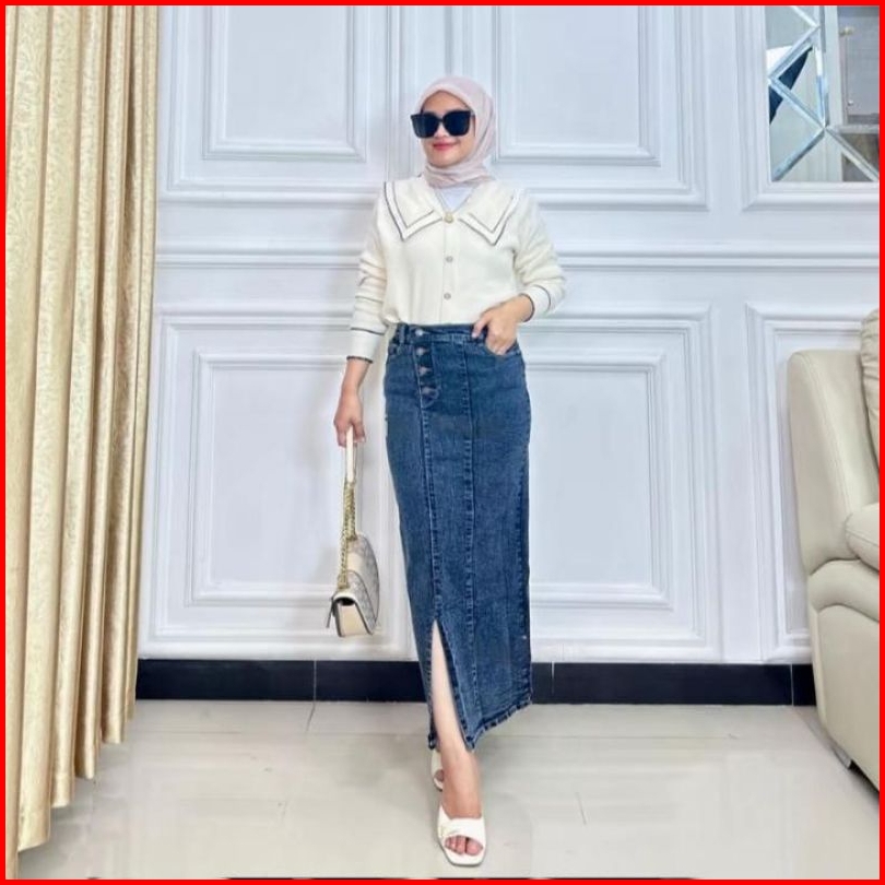 Alesya Rok Jeans Rok Panjang Skirt Jeans Belah Samping Rok Kancing Samping