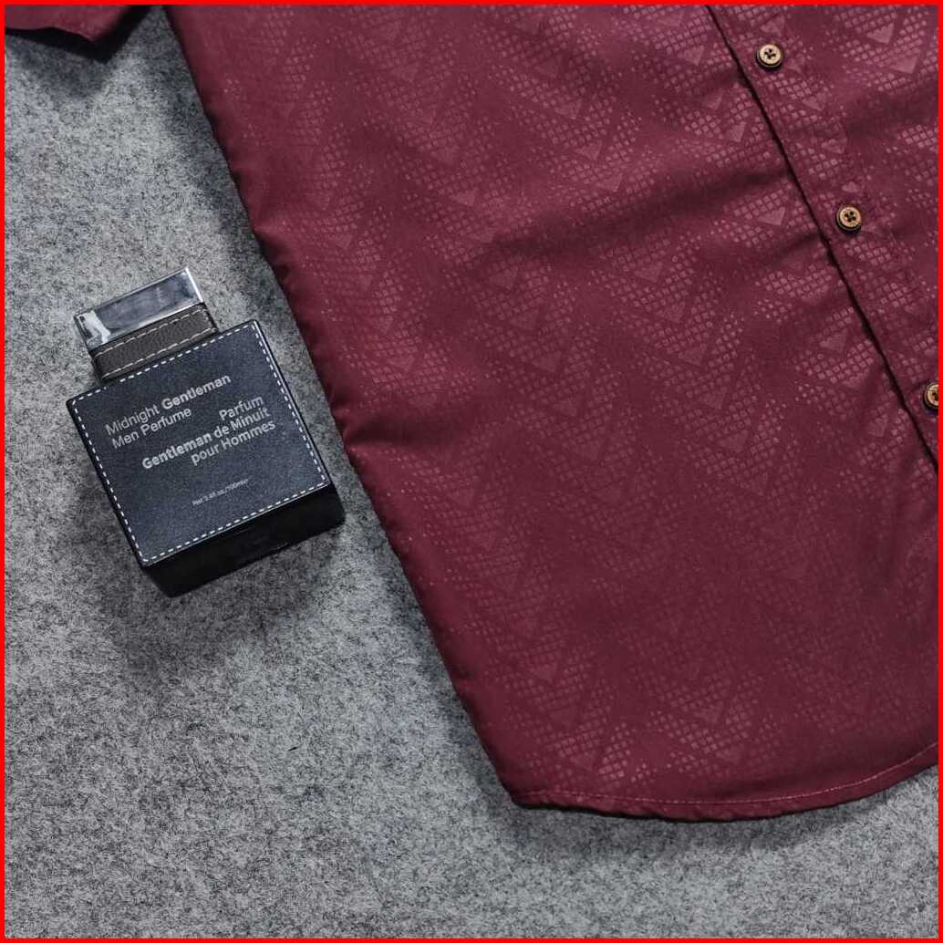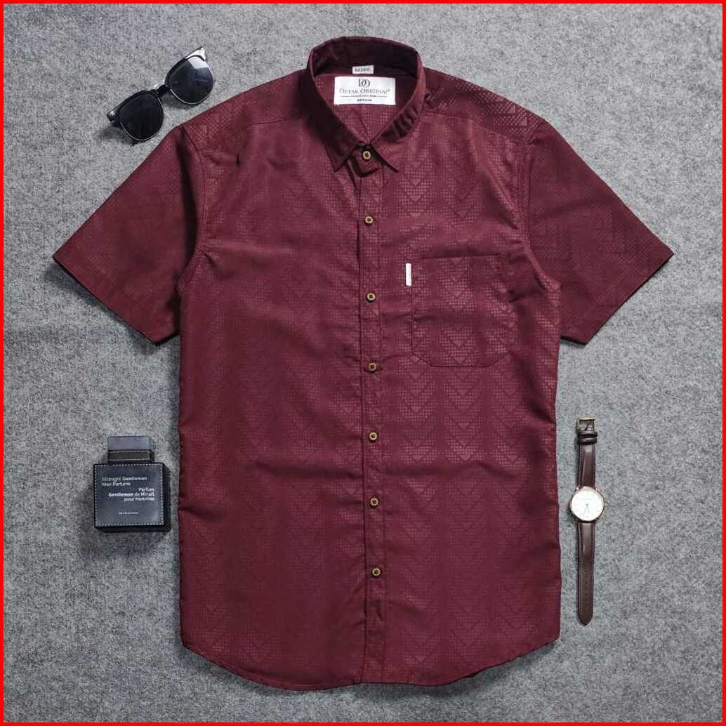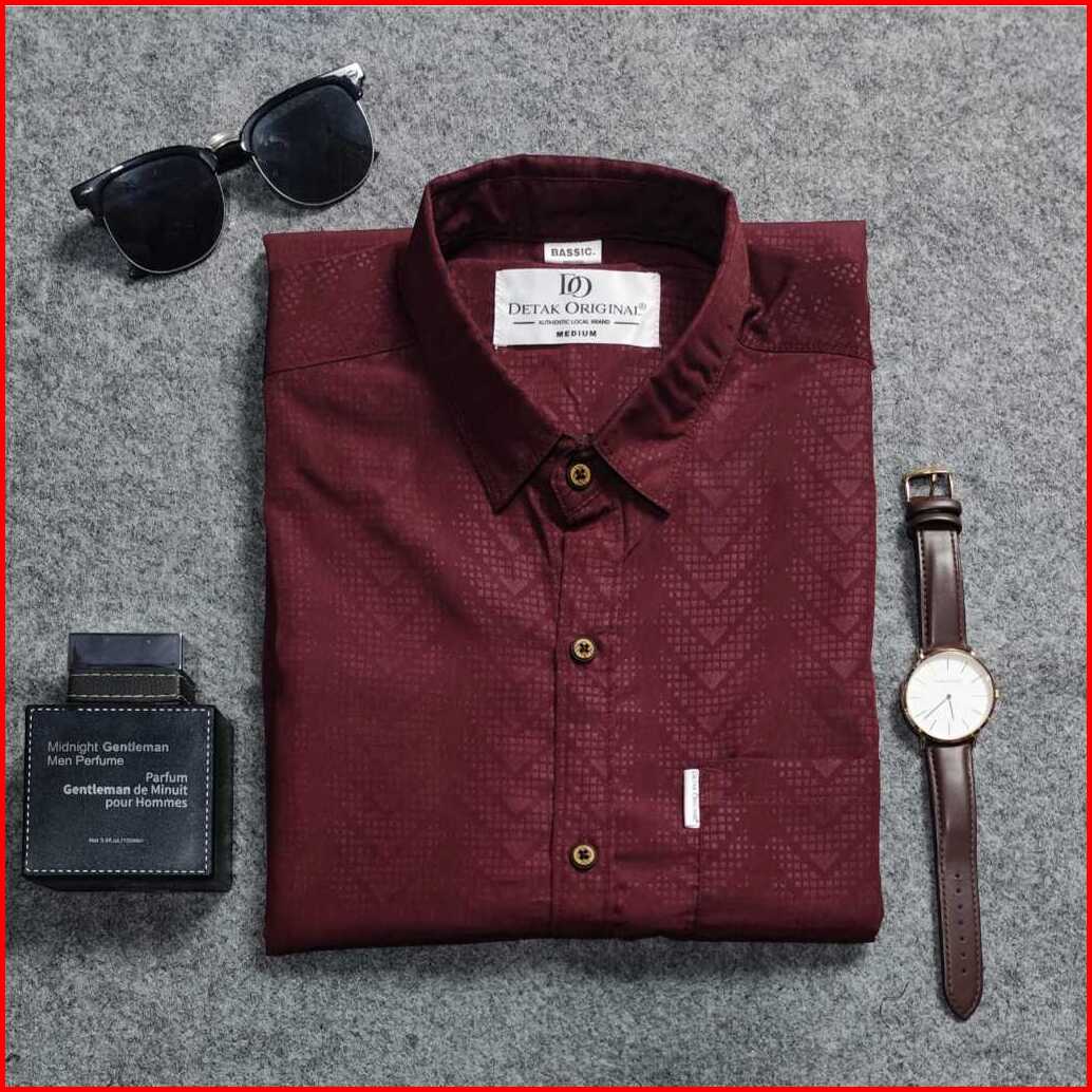Detak Original Kemeja Embos Sultan Pria Lengan Pendek Piramid Marun Casual Slimfit