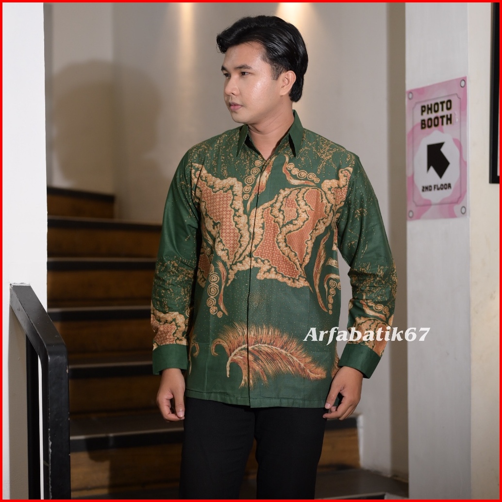 Peta Hijau Kemeja Batik Pria Premium Lapis Furing Hero Ready Seragaman By Arfabatik67