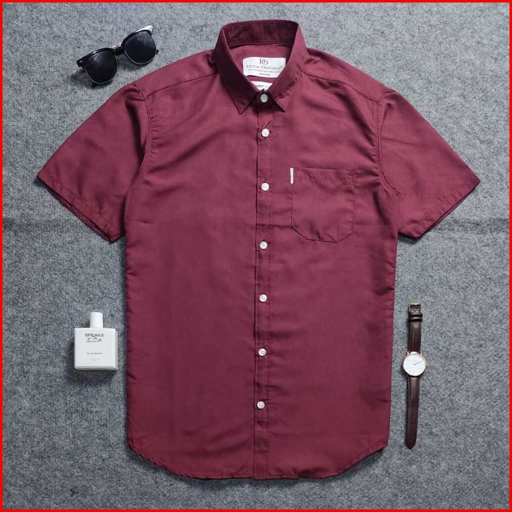 Detak Original Kemeja Polos Pria Lengan Pendek Polymicro Marun Casual Slimfit