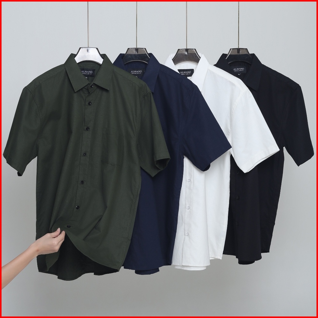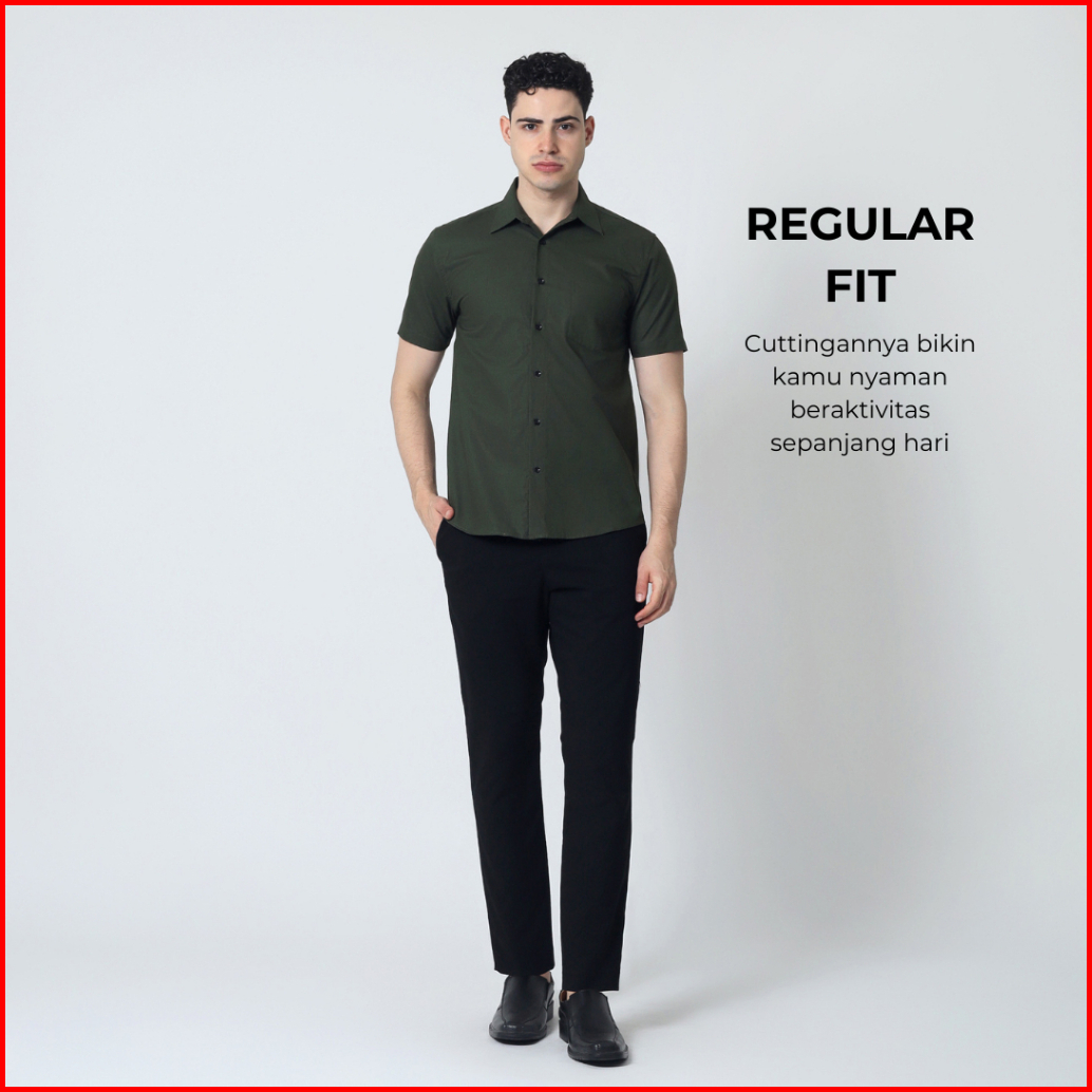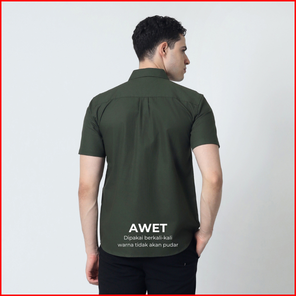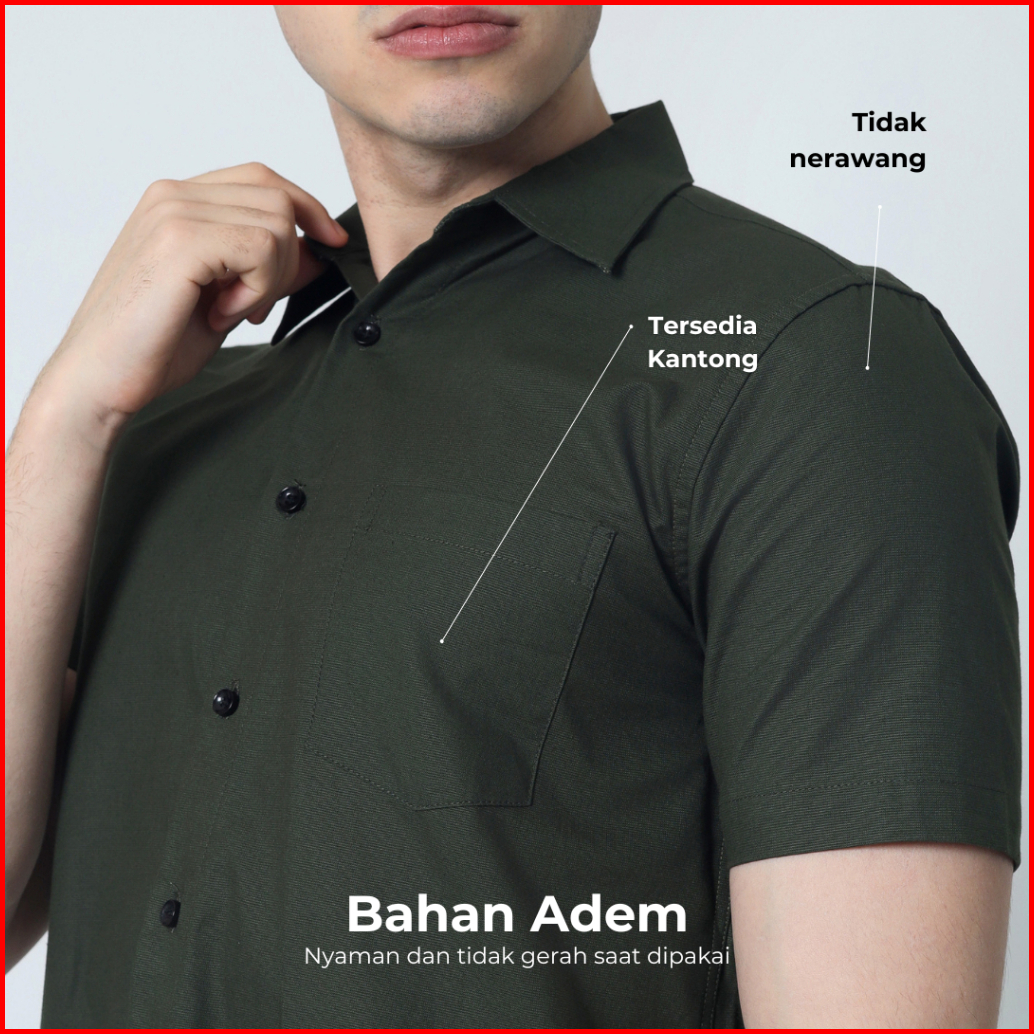 Almano Tomy Shirt Ss Dark Green Kemeja Pria Regular Fit Polos Pendek Hijau Tua