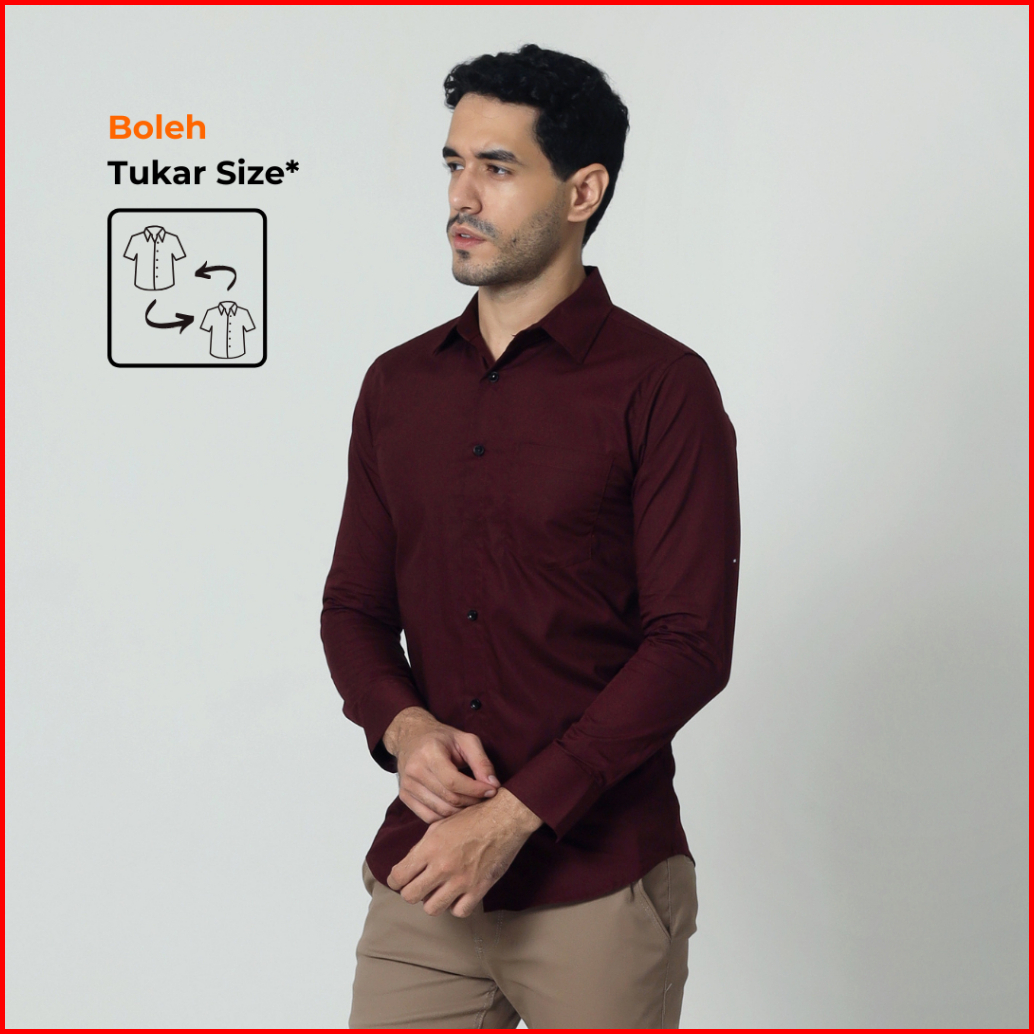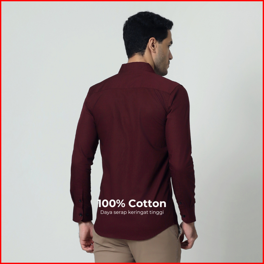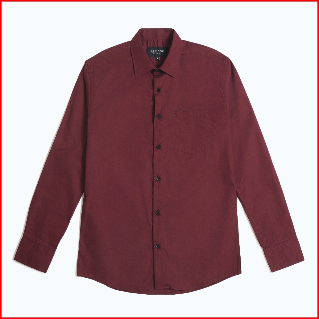 Almano Devin Shirt Ls Maroon Kemeja Pria Slim Fit Polos Panjang Katun Maroon