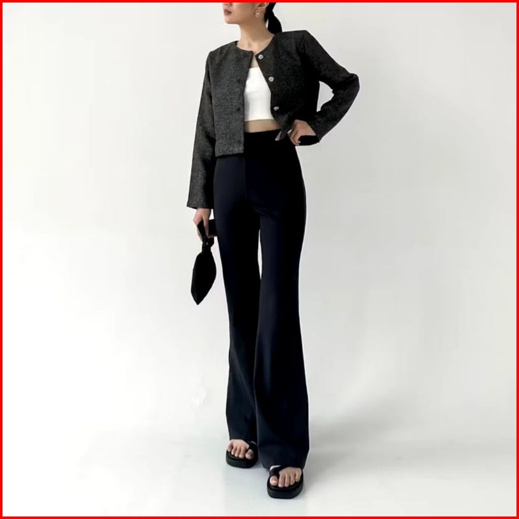 Celana Cutbray Fit And Flare Pants Cutbray Scuba Pinggang Highwaist Bahan Scuba Stretch Premium