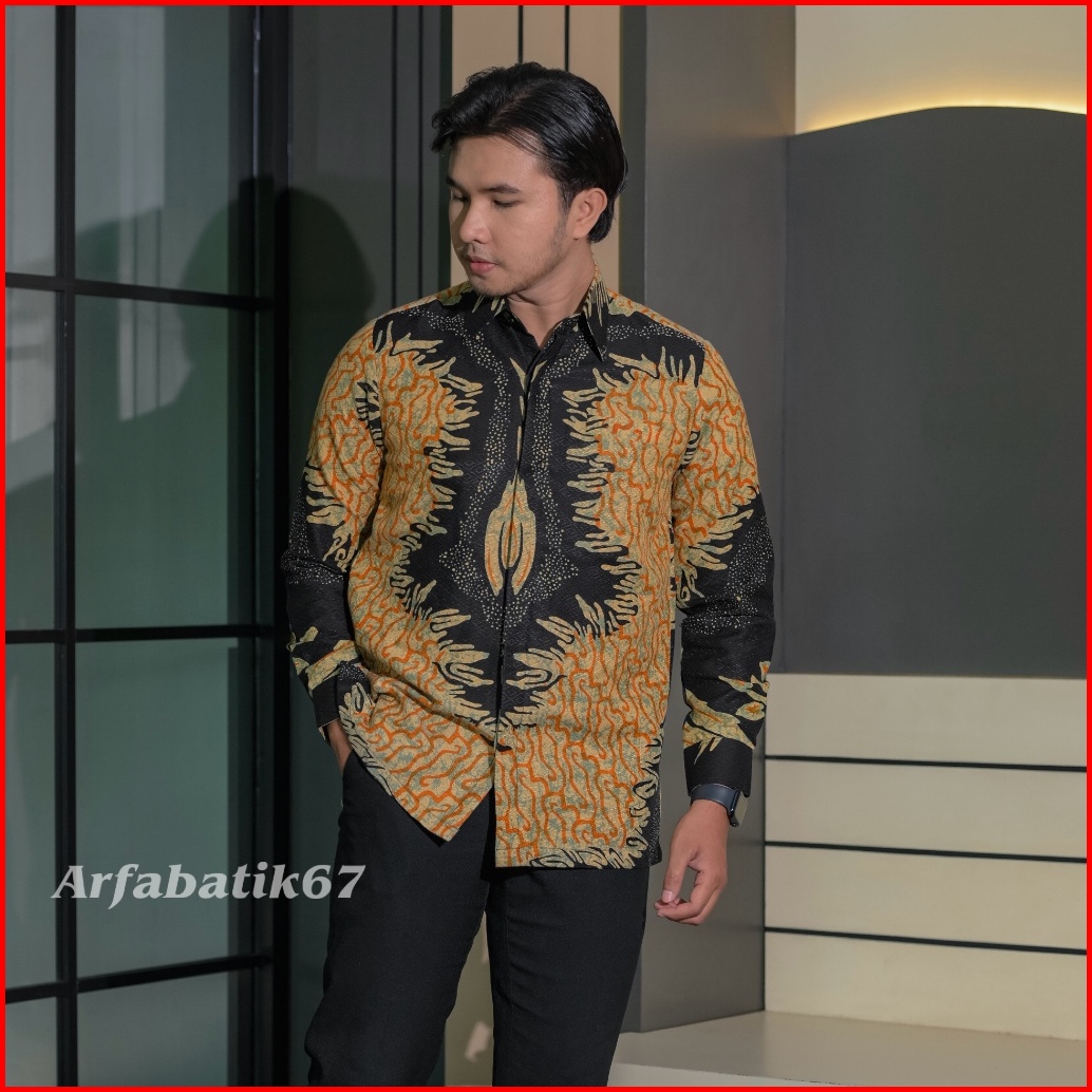 Kanda Hitam Kemeja Batik Pria Tangan Panjang Doby Solo Premium Lapis Full Furing Trikot Wafle Ready Seragaman By Arfabat