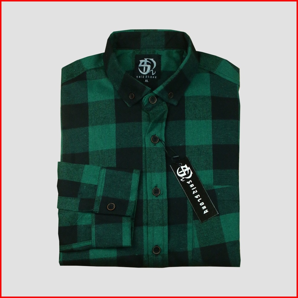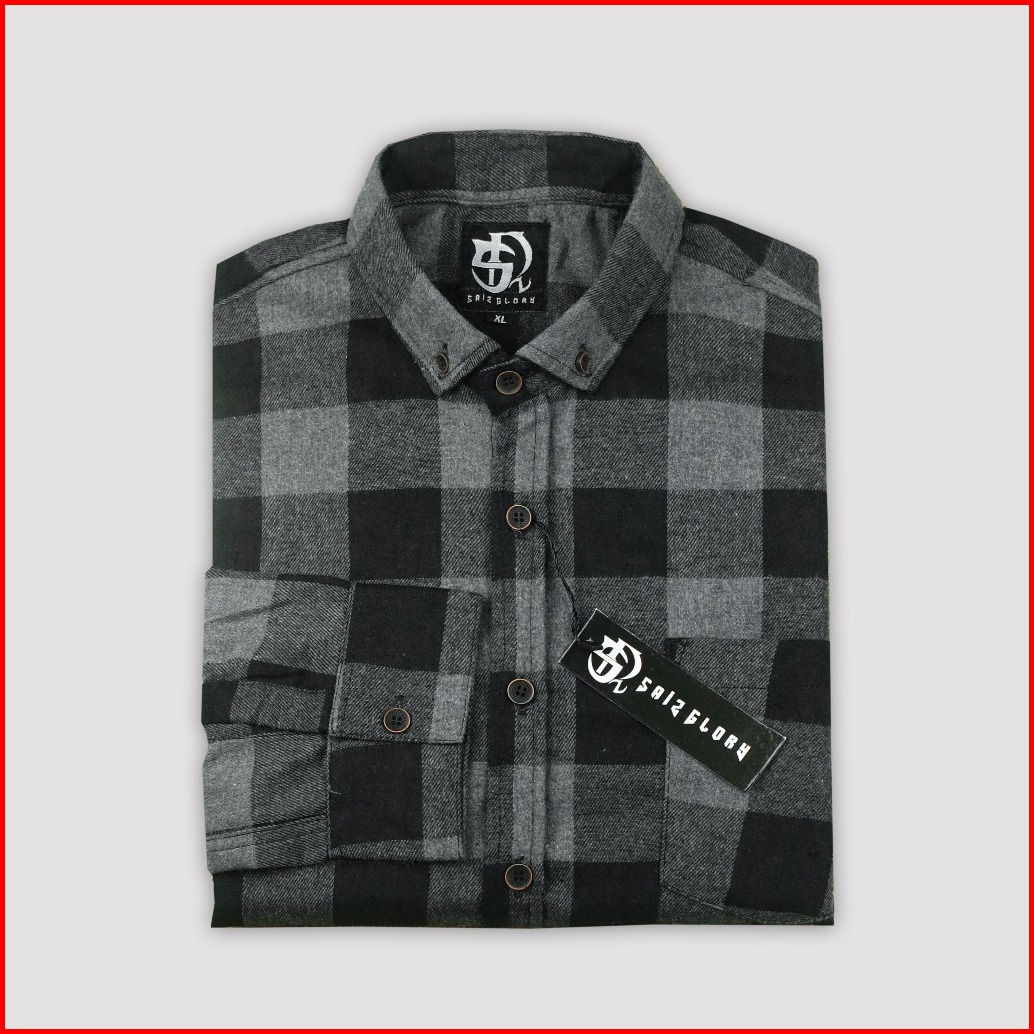Saiz Glory Kemeja Pria Lengan Panjang Bahan Flanel Import Motif Kotak Kotak