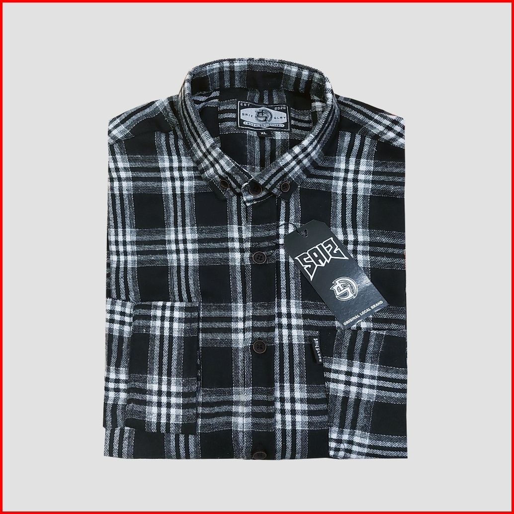 Saiz Glory Kemeja Flanel Pria Lengan Panjang Motif Big Liner Mocca