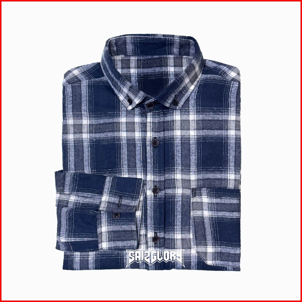 Saiz Glory Kemeja Pria Dan Wanita Lengan Panjang Bahan Flanel Import Motif Kotak Veterano