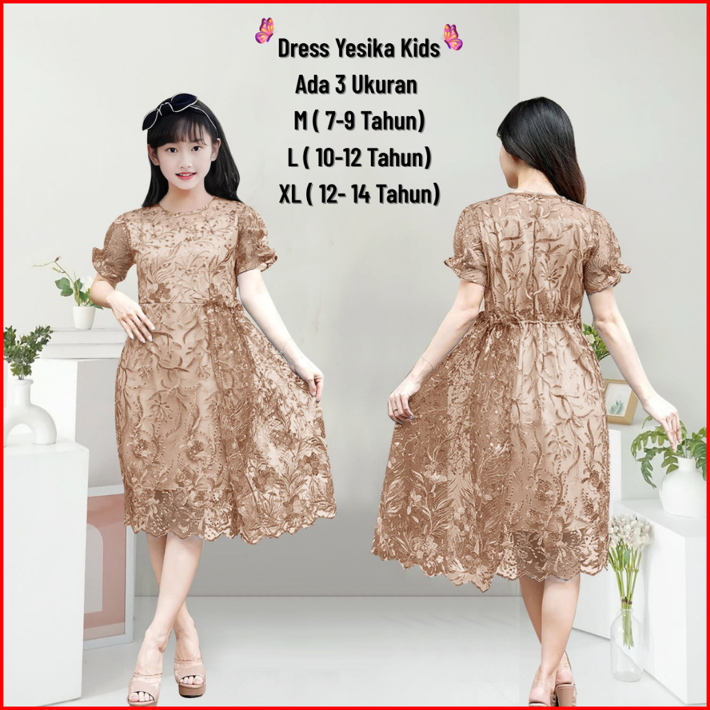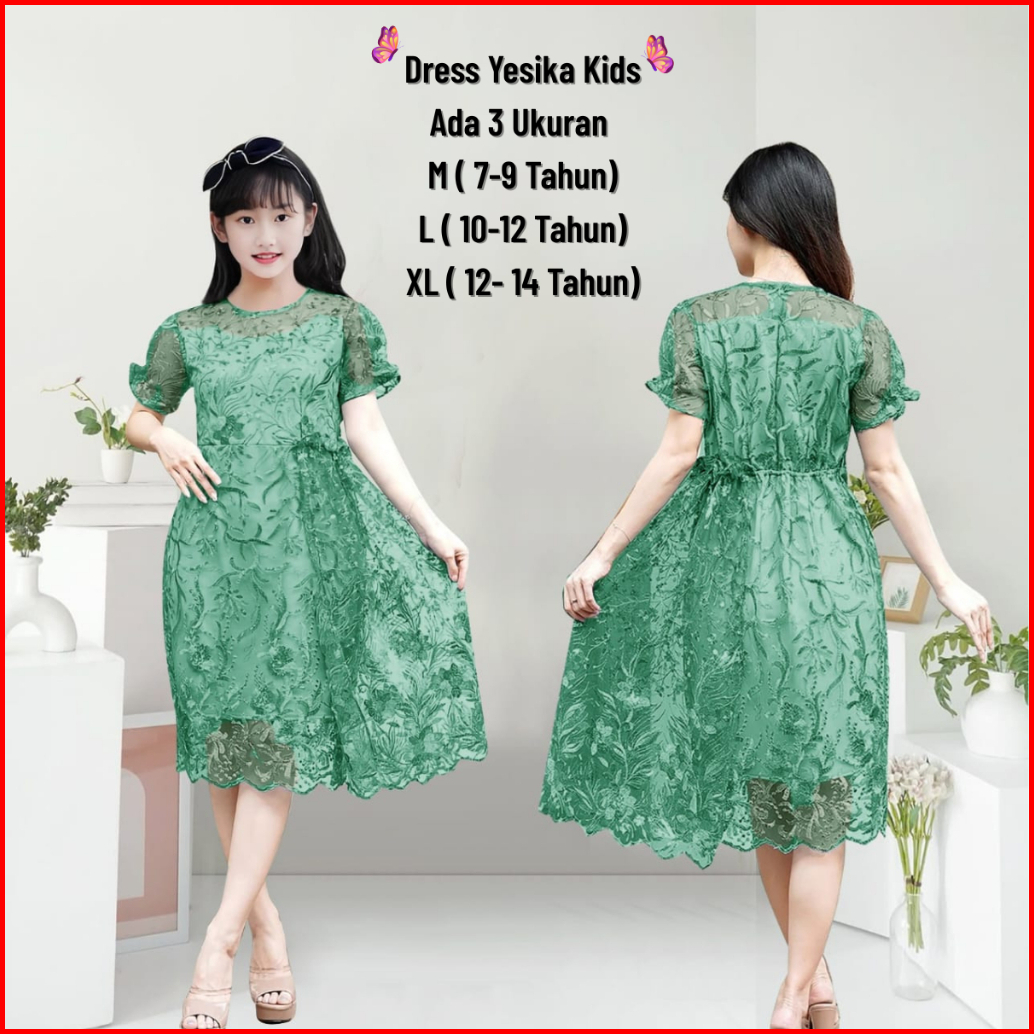 Dress Anak Perempuan Abg Terbaru Dress Yesika Kids 7-14 Tahun Gaun Natal Anak Full Brokat Mutiara