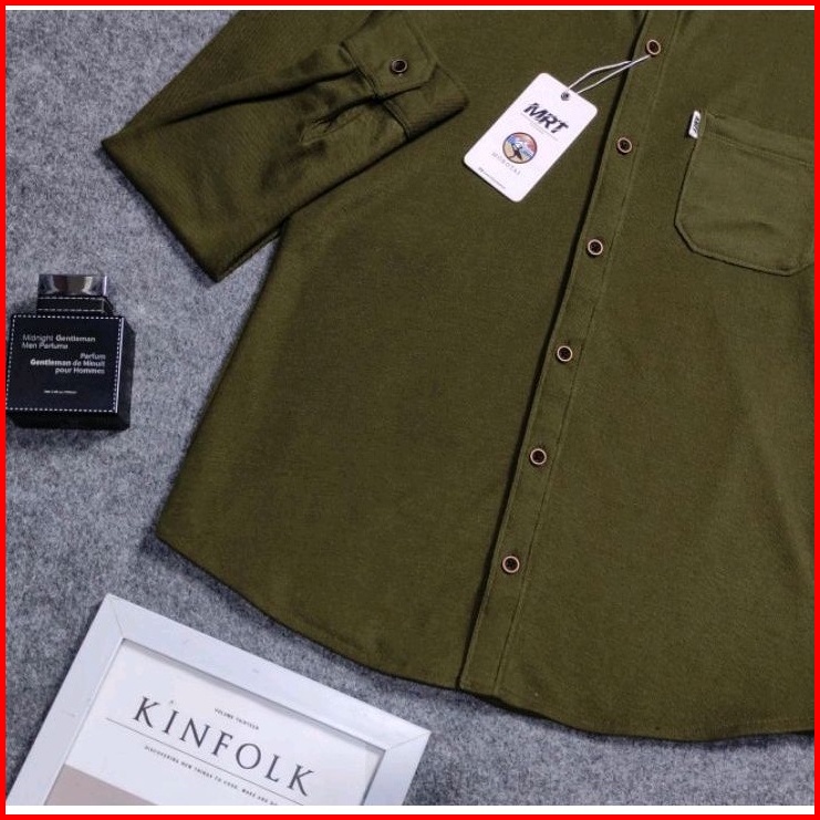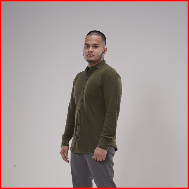 Detak Original Kemeja Polos Pria Lengan Panjang Cotton Lacos Pique Premium Slim-fit Hijau Army