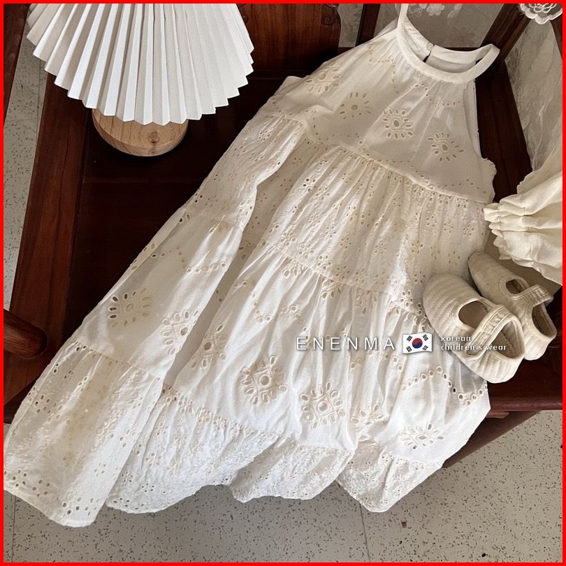 Florence Halter Dress Pantai Cream Anak Lace Hollow Out Dress