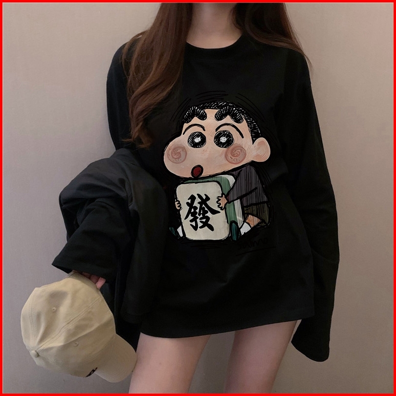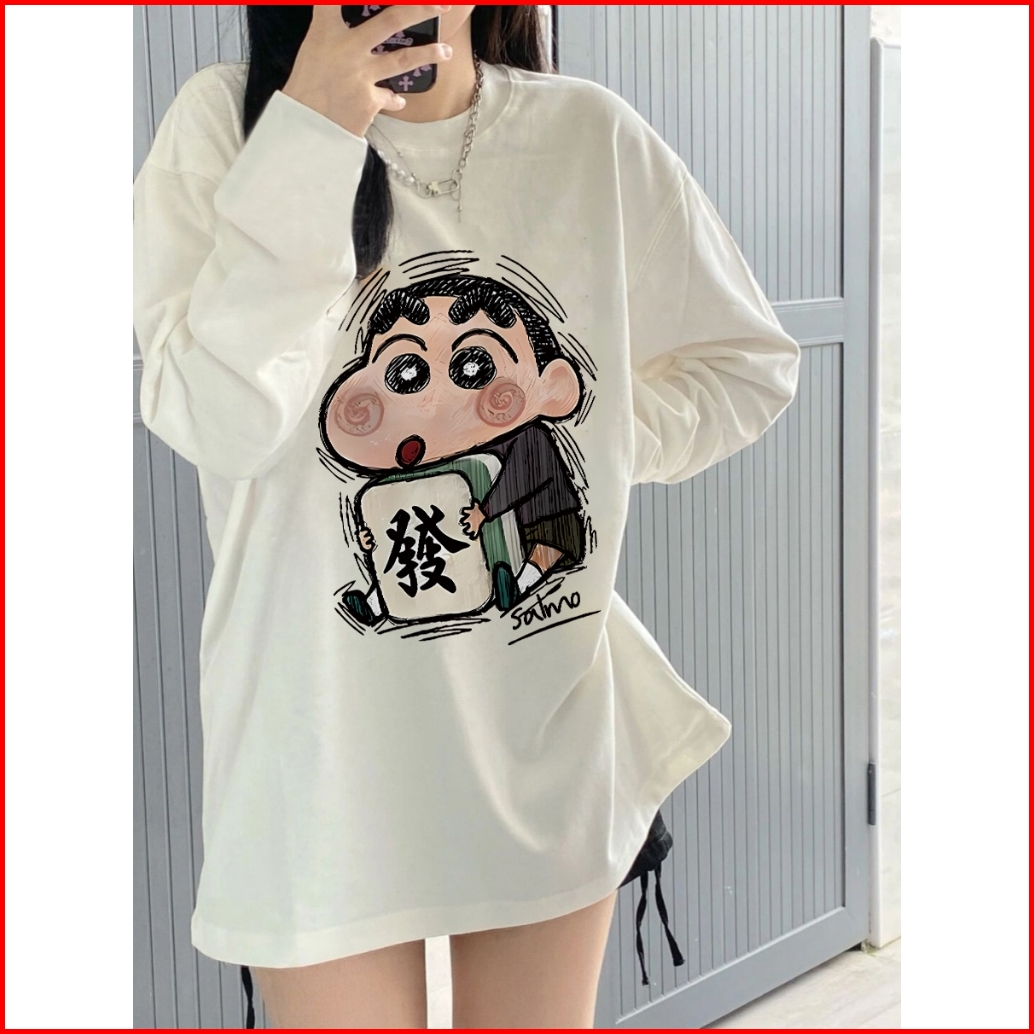 The Monseur Gallery Baju Kaos Wanita Lengan Panjang Kaos Oversize Wanita Baju Atasan Wanita Get Rich Crayon Shin-chan Ka