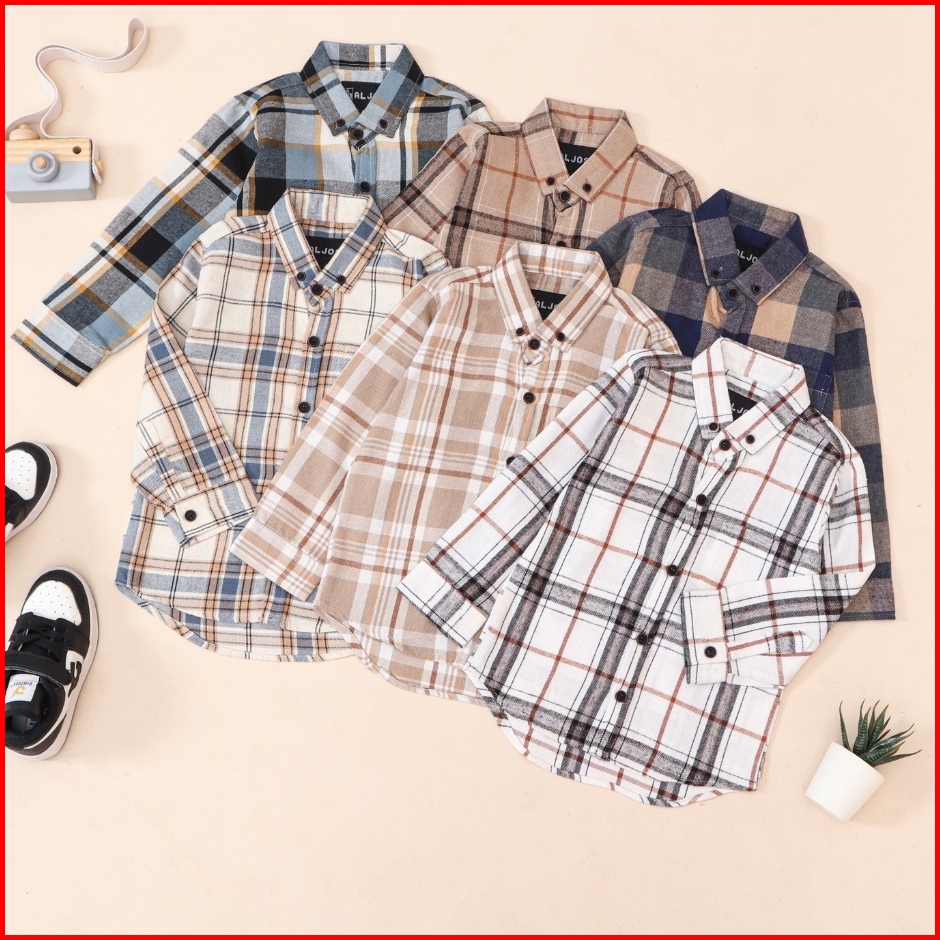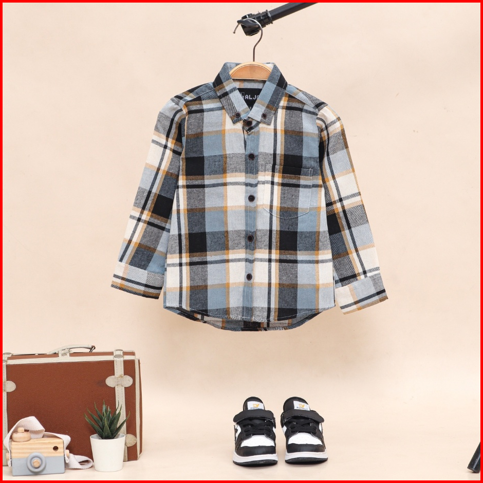 Aljosa Kemeja Flannel Lengan Panjang Anak Laki Laki Usia 2-10 Tahun Motif Kotak Kotak Flanel Premium