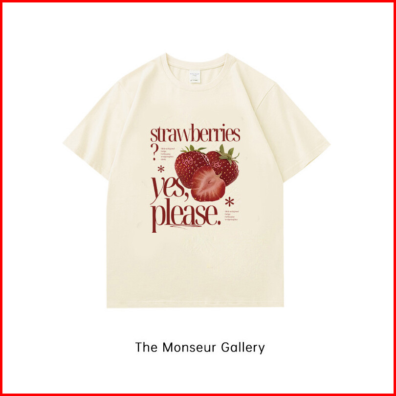 The Monseur Gallery Kaos Wanita Oversize Strawberry Letter Print Style Baju Atasan Wanita Terbaru Kaos Baju Cream