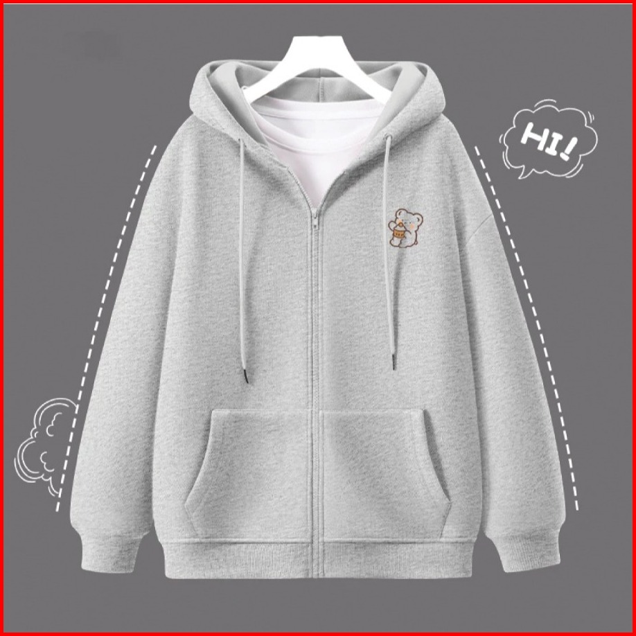 Harvional Jaket Zipper Hoodie Sweater Oversize Pullover Beruang Makan Pria - Wanita