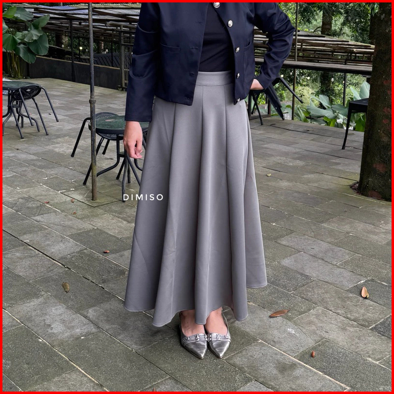 Audy Skirt - Korean Loose Maxi Skirt Rok Wanita Anti Kusut Polyester - Rok Flare Wanita - Rok Basic Polos - Maxi Skirt R