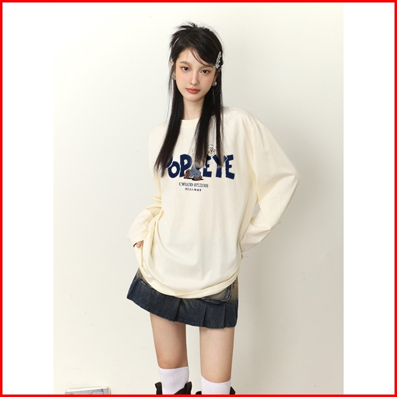 The Monseur Gallery Baju Kaos Wanita Lengan Panjang Kaos Oversize Wanita Baju Atasan Wanita Popeye Kaos Wanita Cream