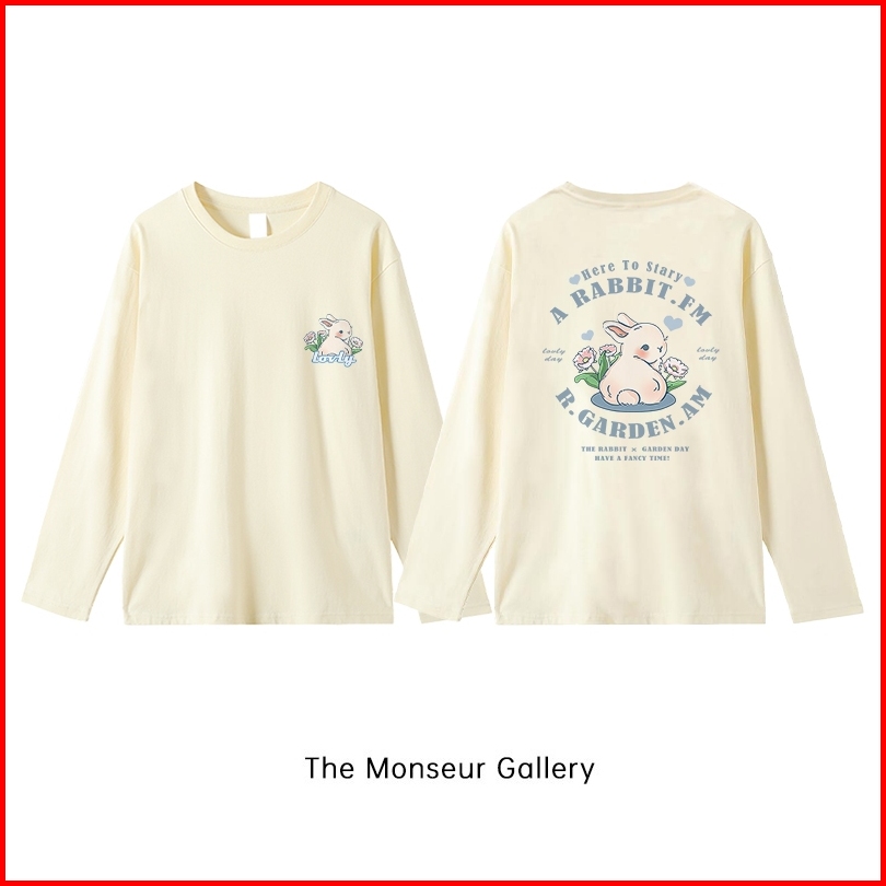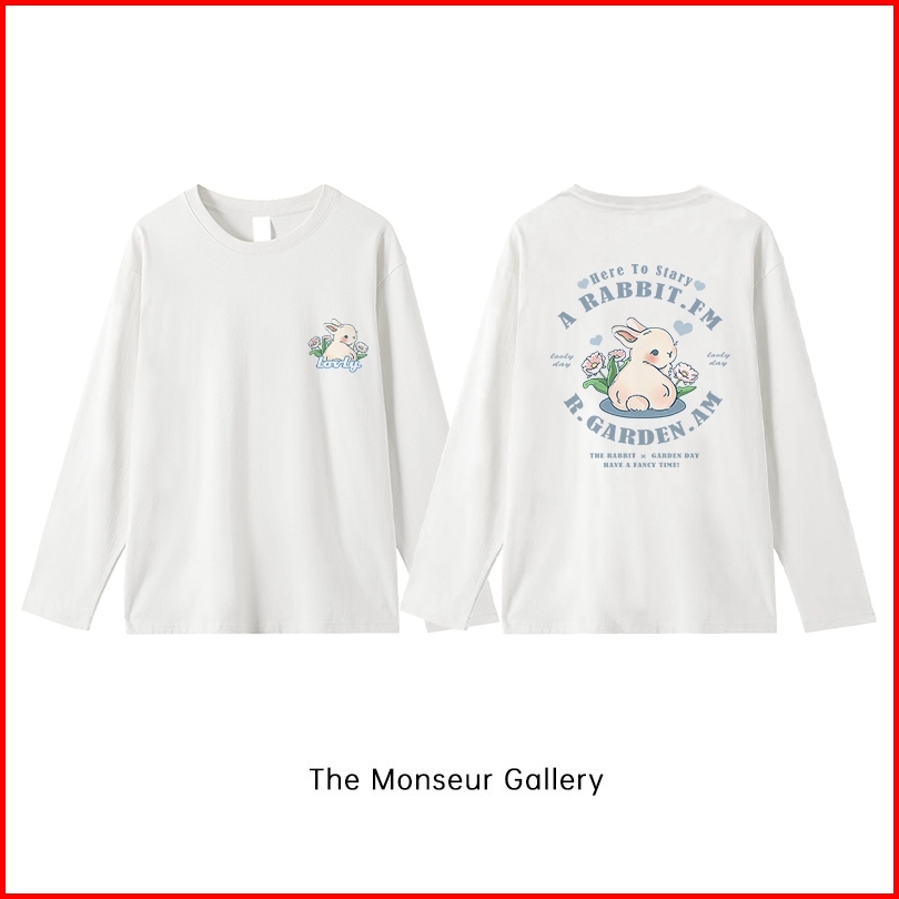 The Monseur Gallery Baju Kaos Wanita Lengan Panjang Kaos Oversize Wanita Baju Atasan Wanita Double-sided A Rabbit.fm Kao