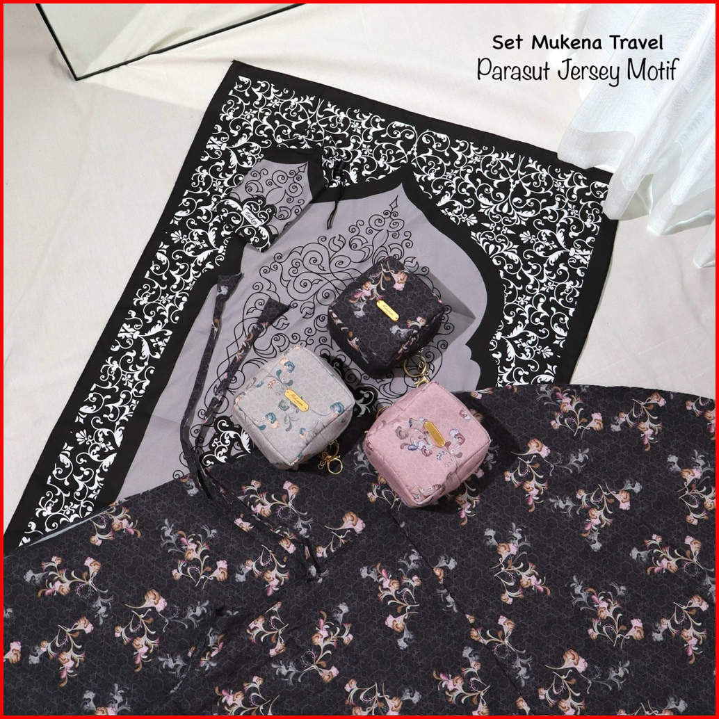 Full Set Mukena Dewasa 2in1 Parasut Jersey Travel Pouch Sajadah Traveling Motif Kashmeer