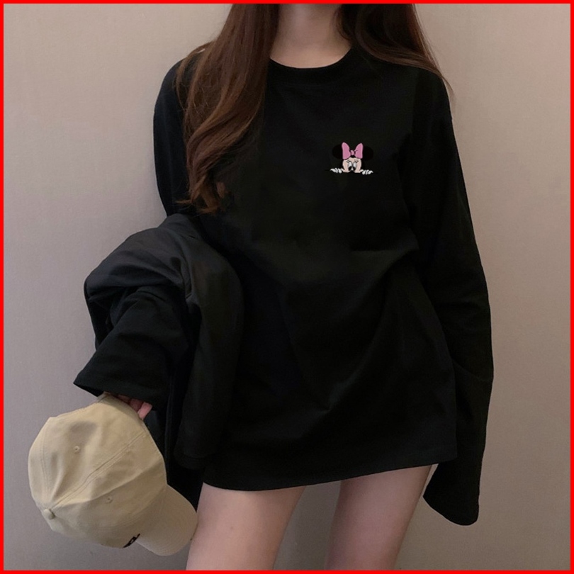 The Monseur Gallery Baju Kaos Wanita Lengan Panjang Kaos Oversize Wanita Baju Atasan Wanita Cartoon Minnie Style Kaos