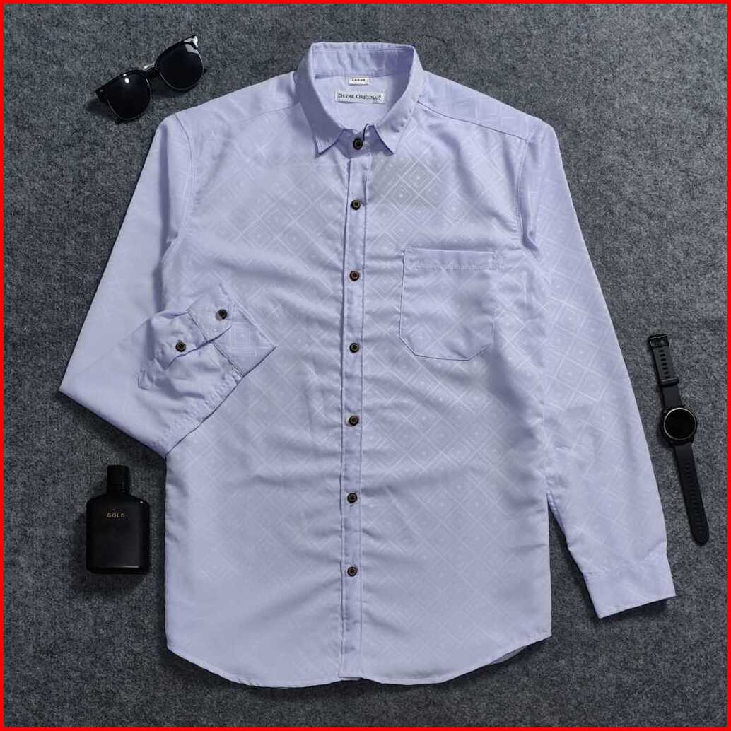 Detak Original Kemeja Embos Sultan Pria Lengan Panjang Putih Diamond Casual Slimfit