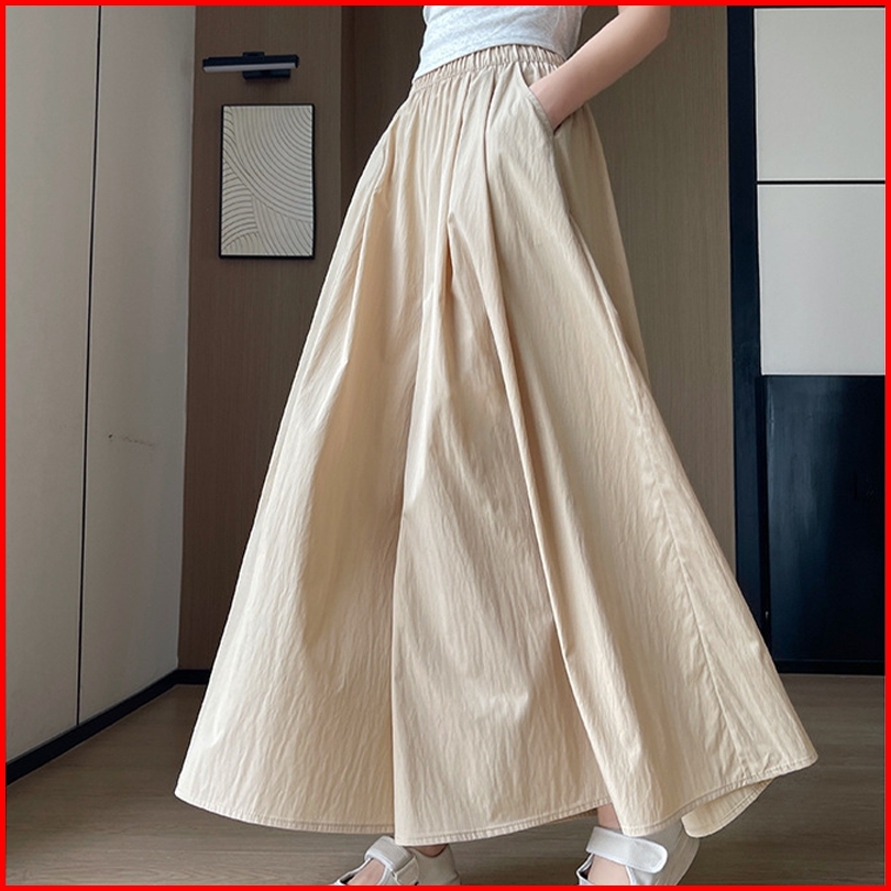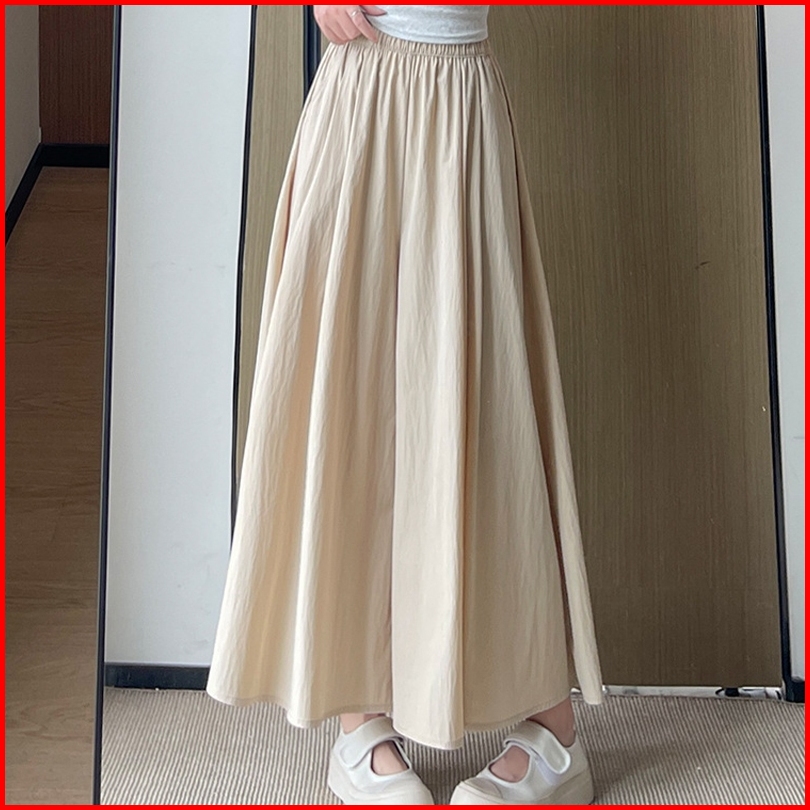 Rok Panjang Wanita Model Korea 2025 High Waist A-line Plisket Elegan Slim Cocok Untuk Cewek Bertubuh Mungil