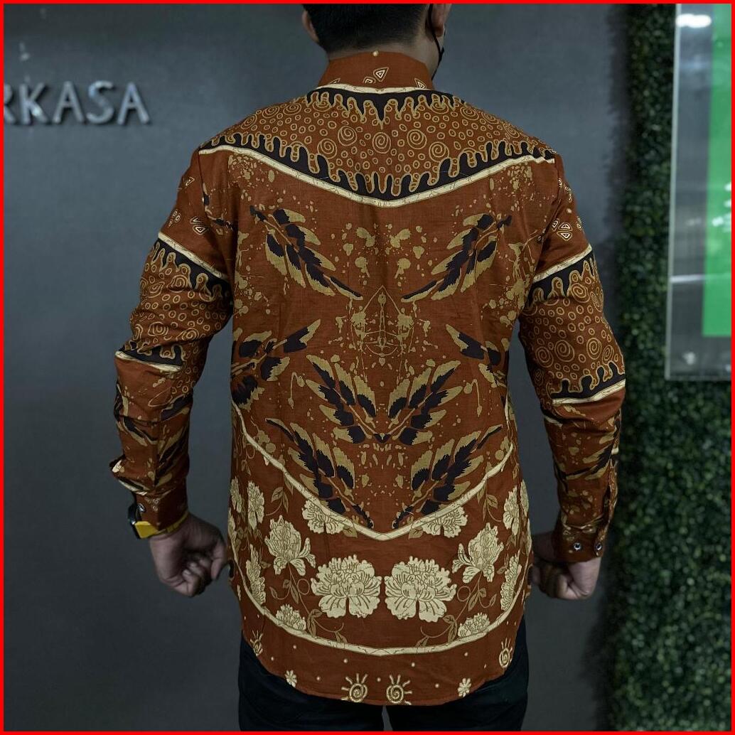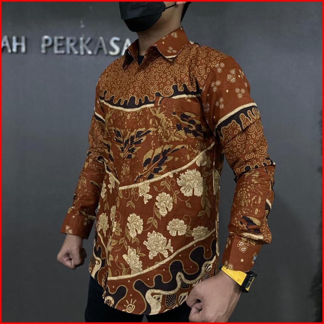 Cuci Gudang Slimfit Sinaran Caramel Kemeja Batik Pria Lengan Panjang Katun Solo Lapis Furing Hero By Arfabatik67
